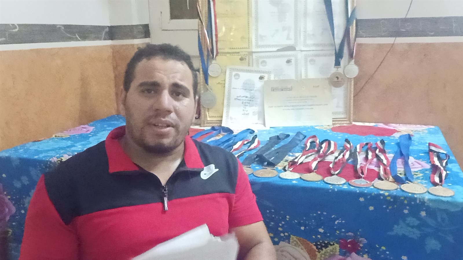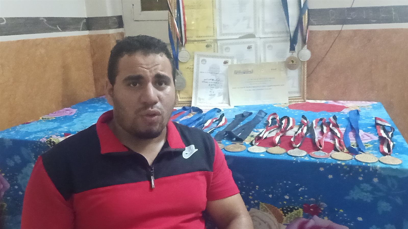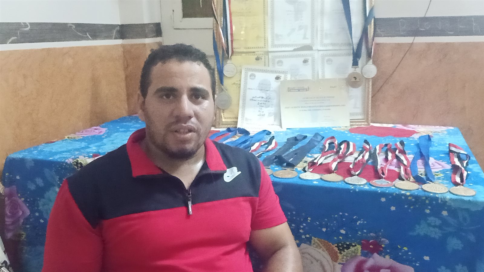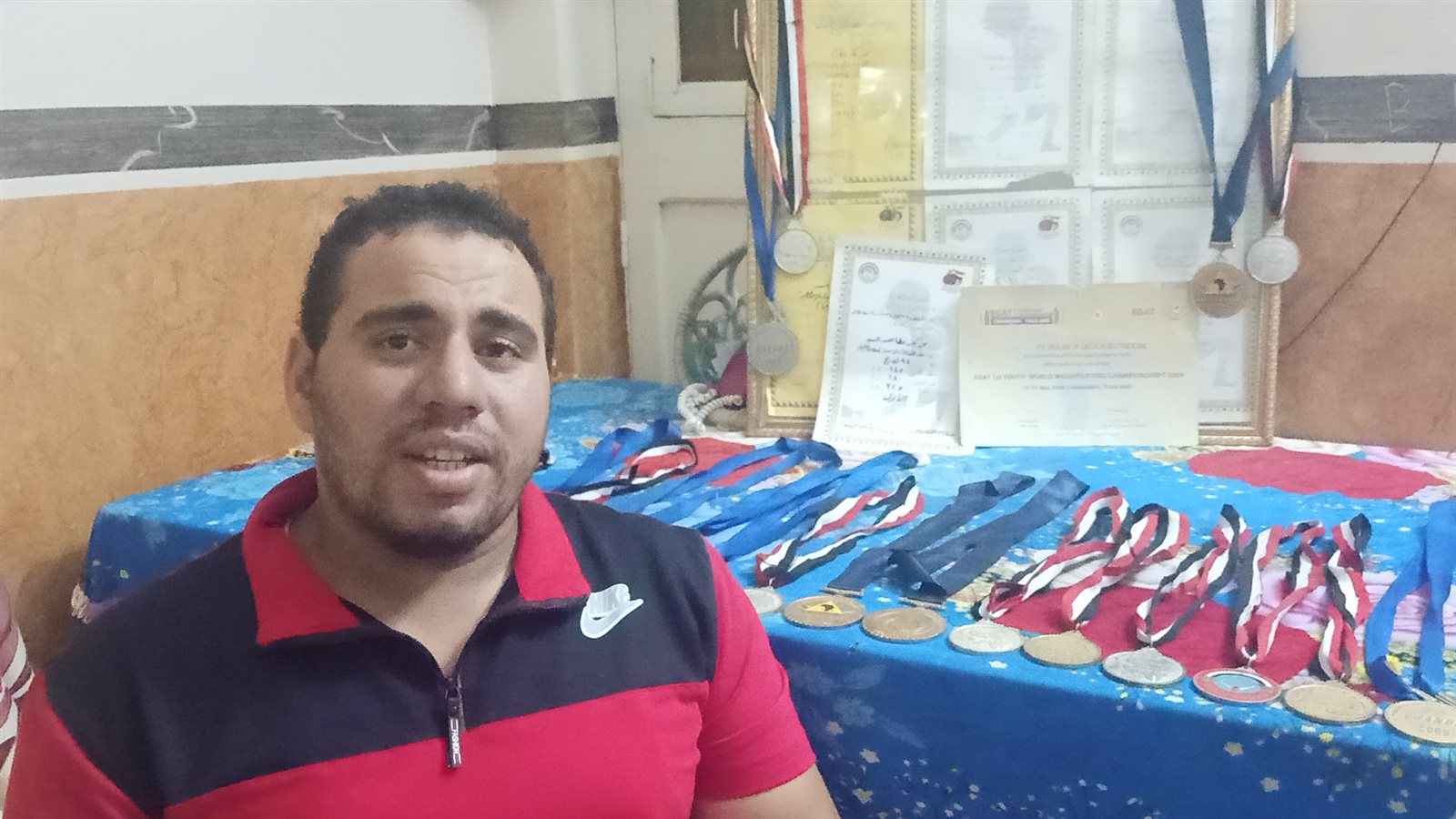 مأساة حقيقية يعيشها أحد أبطال مصر في رفع الأثقال، بعد تعرضه لإصابة خطيرة حرمته من استكمال مسيرته الرياضية، وأحدثت شللًا تامًا في حياته، هذه المأساة أو المحنة بطلها محمد بكر عطا الله، 29 عامًا، مقيم بقرية ميت دمسيس التابعة لمركز أجا بـمحافظة الدقهلية وهو بطل دولي وبطل الجمهورية لمدة ١٢ عامًا على التوالي في رفع الأثقال، الذي كشف لـ"فيتو" عن وضعه المأساوي الذي يعيشه بعد تعرضه لإصابة في إحدى بطولات الجمهورية في عام ٢٠١٧ أجبرته على الابتعاد عن ممارسة الرياضة.