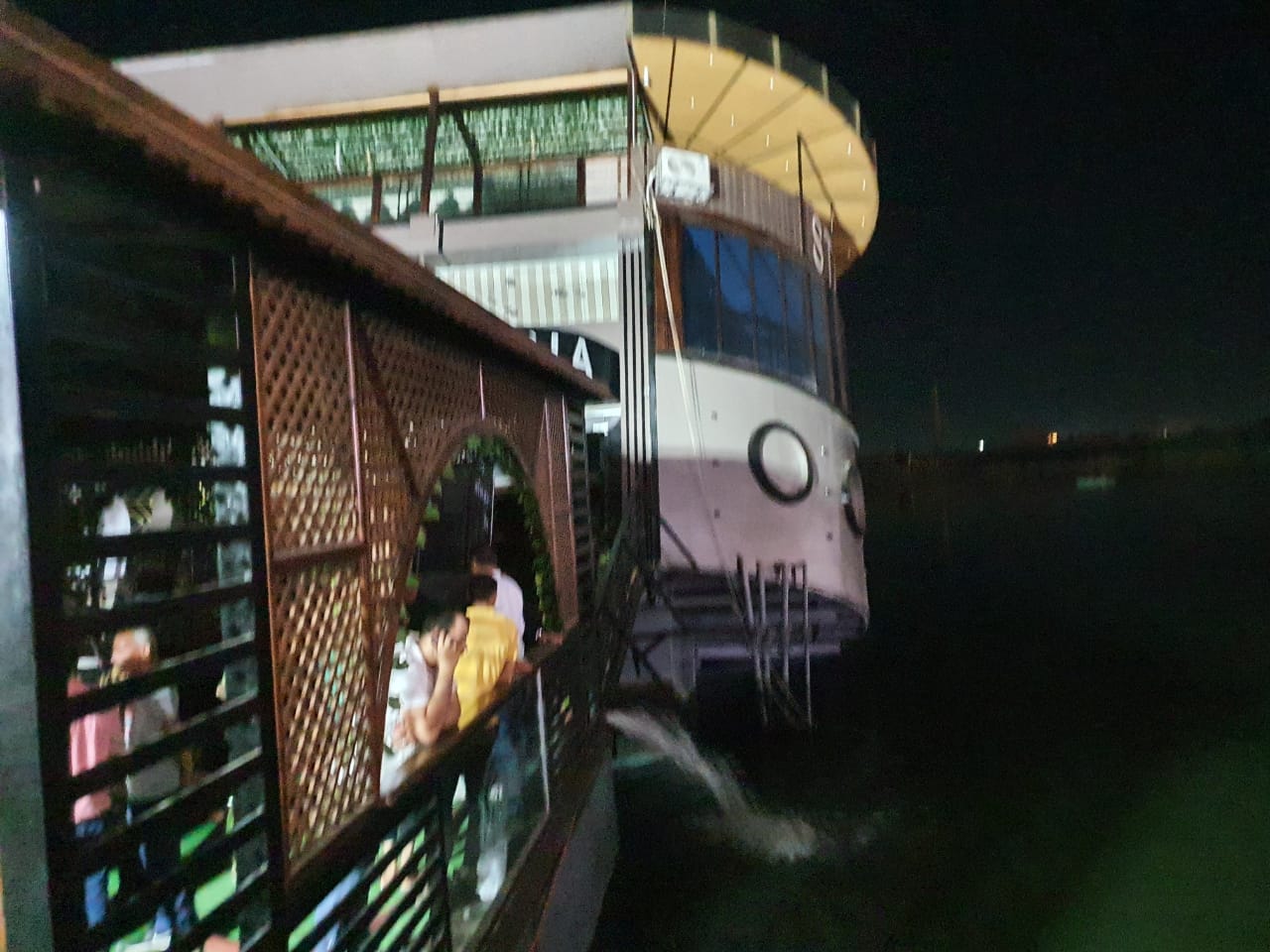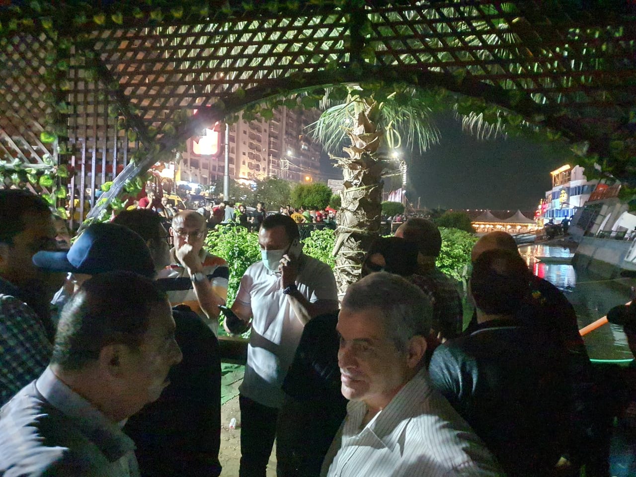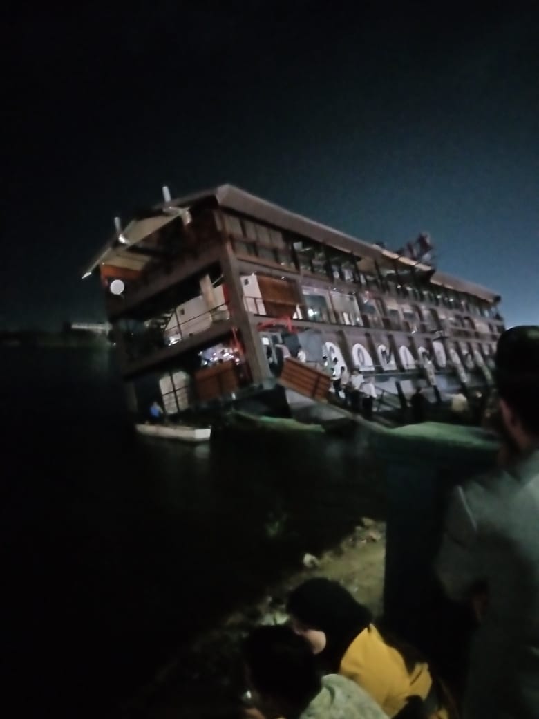 وتواصل رجال الحماية المدنية والإنقاذ النهري بمحافظة الدقهلية جهودهم في تفقد جنوح المطعم العائم بالنيل في مدينة المنصورة أثناء حفل عقد قران.