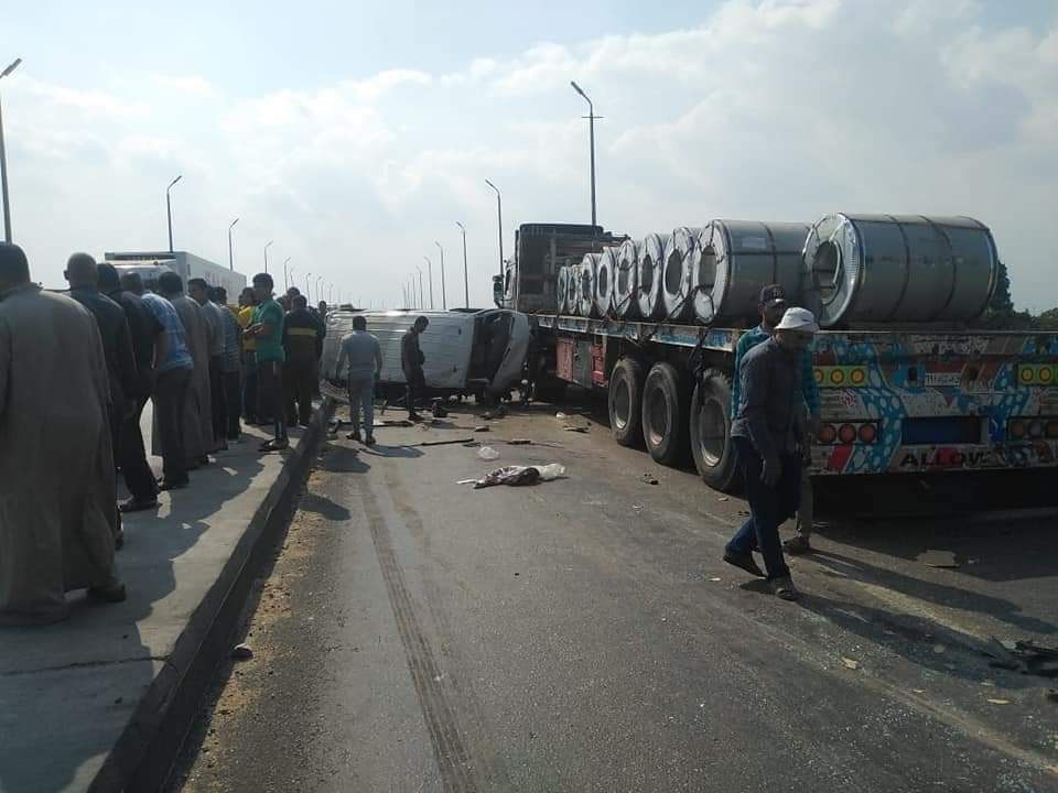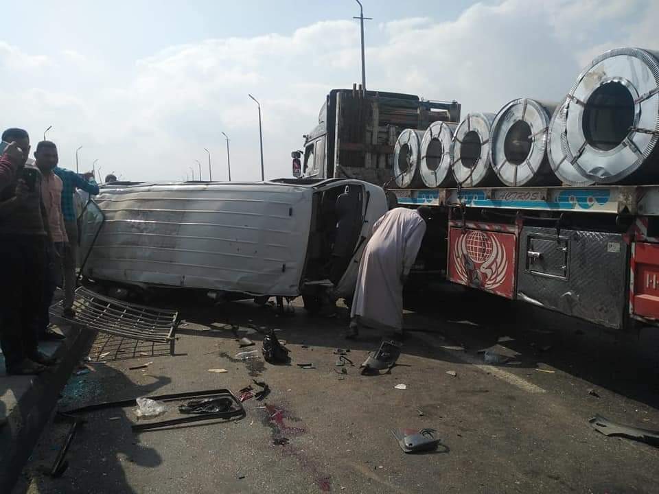 وكان طريق المنصورة - القاهرة بمحافظة الدقهلية شهد حادث تصادم وانقلاب سيارتي نقل ثقيل وأخرى ميكروباص ونتج عن الحادث إصابة ٧ أشخاص اتجاه المنصورة /ميت غمر.