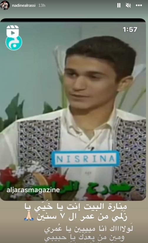 وظهر في الفيديو جورج الراسي في مقابلة تلفزيونية أثناء طفولته، مستعيدة ذكرياته قبل رحيله، حيث علقت عبر خاصية الاستوري قائلة: "منارة البيت انت يا اخي.. مين بعدك يا حبيبي يملى الدنيا".