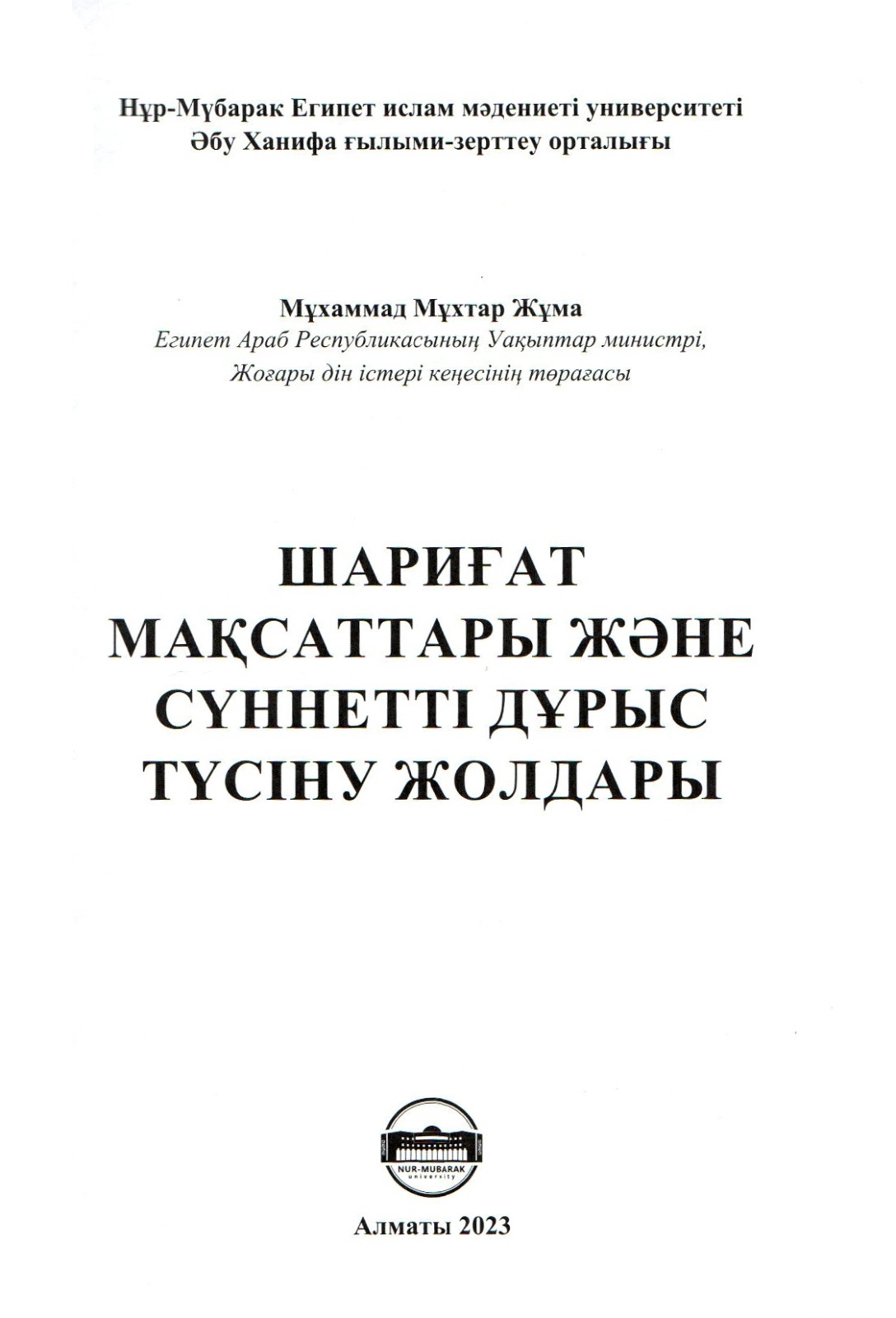 وصدر حديثًا عن الجامعة المصرية للثقافة الإسلامية بجمهورية كازاخستان كتاب: "الفهم المقاصدي للسنة النبوية" للأستاذ الدكتور محمد مختار جمعة وزير الأوقاف باللغة الكازاخية.