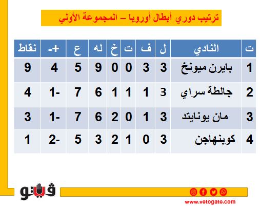 المجموعة الأولى: بايرن ميونخ، مانشستر يونايتد، كوبنهاجن، جالطة سراي.