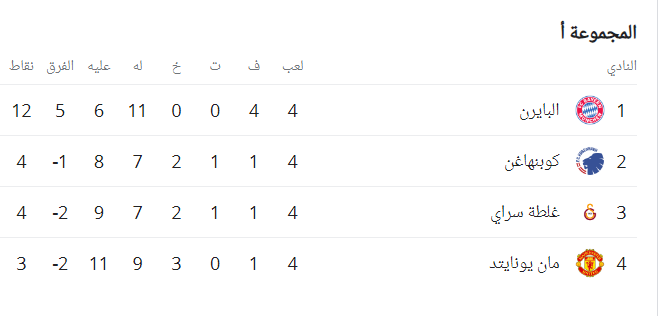 المجموعة الأولى: بايرن ميونخ، مانشستر يونايتد، كوبنهاجن، جالطة سراي.