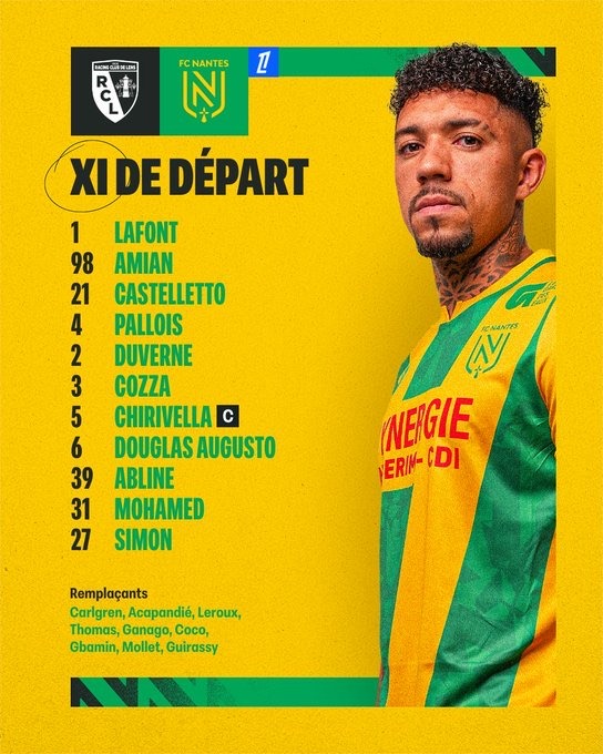 تعادل فريق نانت مع لانس بنتيجة 1-1 في الشوط الأول من المباراة التي تجمع الفريقين على ملعب بولار دولولي ضمن منافسات الجولة الحادية عشر من مباريات الدوري الفرنسي اليوم السبت.