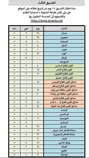 نتيجة تنسيق المرحلة الثالثة للصف الأول لـ رياض الأطفال بمدارس الجيزة