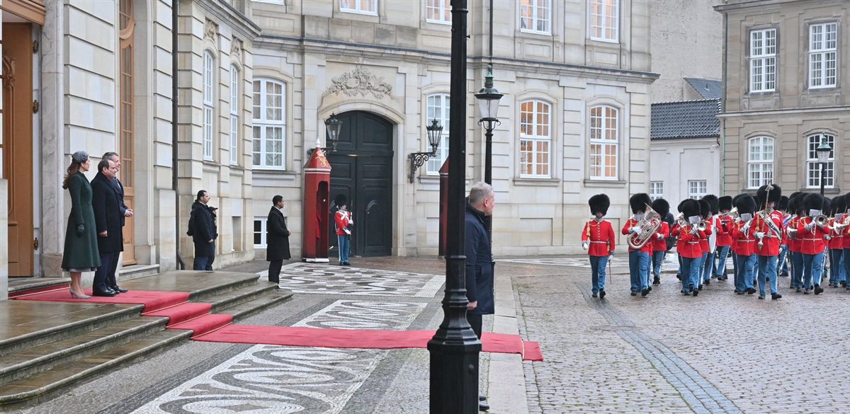 وصرح المتحدث الرسمي باسم رئاسة الجمهورية بأنه قد تم إجراء مراسم استقبال رسمية رفيعة المستوى للرئيس، وفقًا للبروتوكولات المتبعة في زيارات الدولة، حيث تم عزف السلام الجمهوري المصري، ثم استعراض حرس الشرف، كما وضع السيسي إكليلا من الزهور على قبر الجندي المجهول، ثم انتقل الرئيس برفقة ملك وملكة الدنمارك إلى قصر أمالينبورج بواسطة عربات تجرها الخيول.
