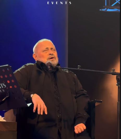 يجلس وعلى وجهه علامات المرض، سلطان الطرب يحيي حفلا غنائيا في دبي (صور)