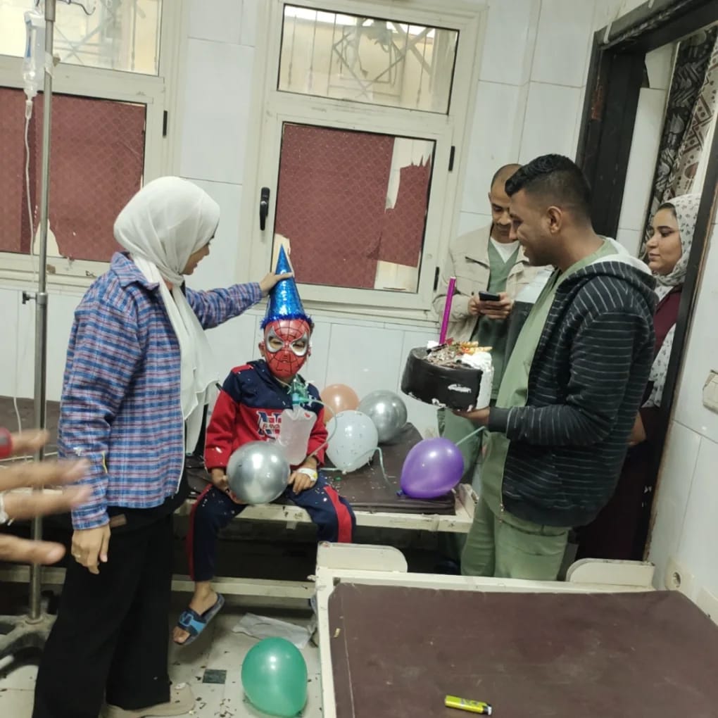 ولذلك قرر أطباء القسم: "أمل حسين ومحمد محمود وأحمد حسنين وميلاد شهدى" أطباء مقيمين، تحت إشراف الدكتور بهاء الهوارى، رئيس قسم الأطفال بالمستشفى، إعداد مفاجأة والاحتفال بعيد ميلاد الطفل داخل المستشفى.