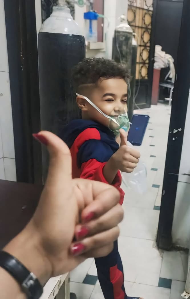 واحتفل الفريق الطبى بالطفل معاذ مجدى، البالغ من العمر 8 سنوات، من محافظة أسوان، مصاب بمرض مزمن فى الرئة "توسع القصبات Bronchiectasis"، والذى يلزمه التردد على قسم الأطفال بمستشفى أسوان الجامعى، للحصول على جلسات التنفس بالأكسجين والتى يداوم عليها حتى فى منزله.