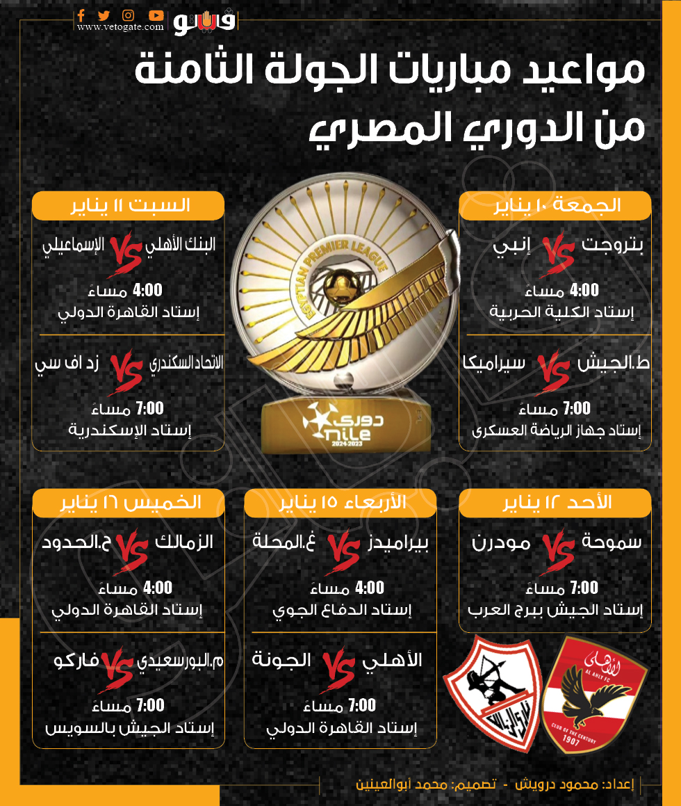 مواعيد مباريات الجولة الثامنة من الدوري المصري (إنفوجراف)