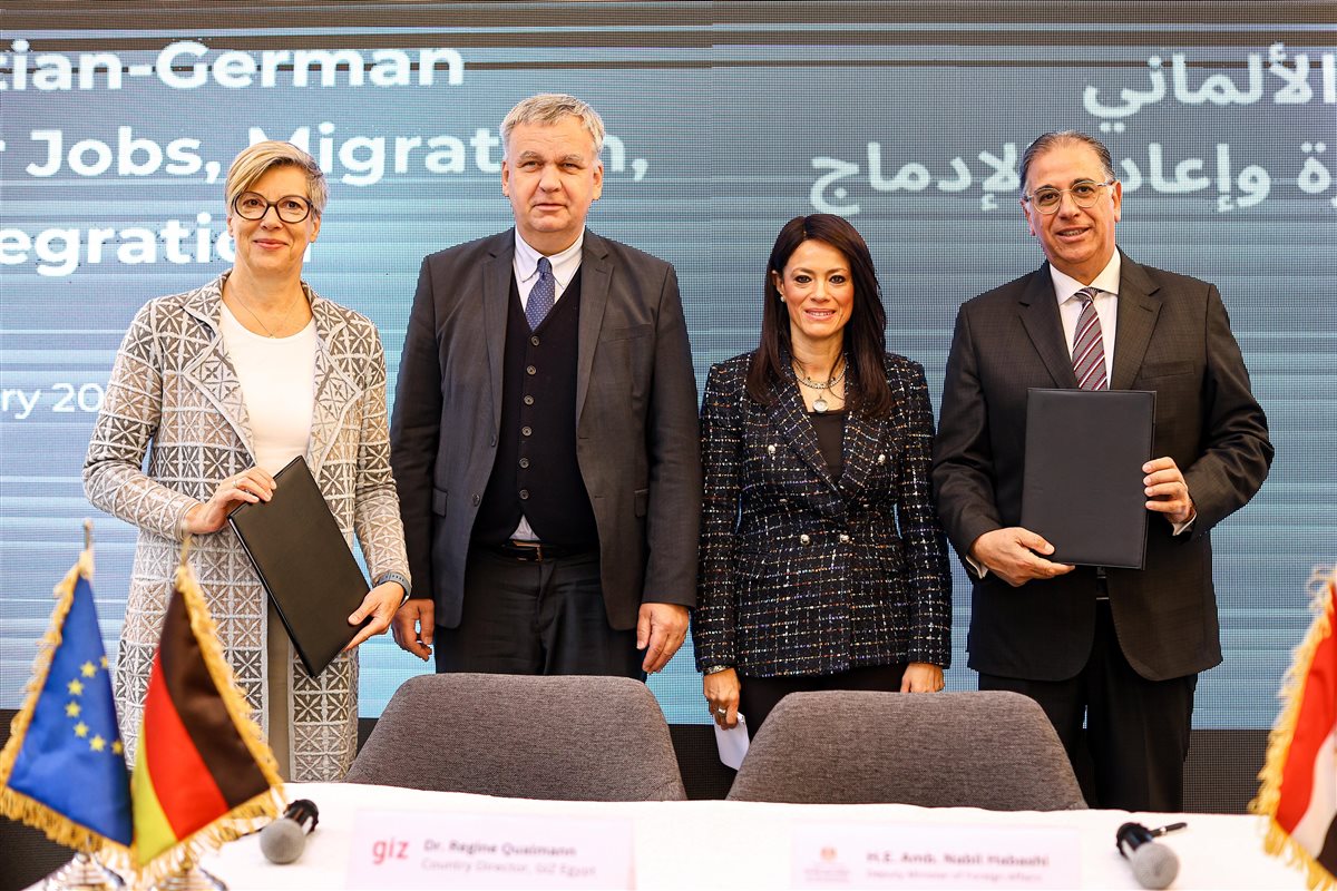 و وقع الاتفاقية السفير نبيل حبشي، نائب وزير الخارجية لشؤون الهجرة وشؤون المصريين في الخارج، والدكتورة ريجينا كوالمان، مديرة مكتب الوكالة الألمانية للتعاون الدولي (جي اي زد) مصر، وذلك بحضور آن كوفيد، رئيسة قسم الدمج الاجتماعي والحوكمة والهجرة بوفد الاتحاد الأوروبي في مصر.