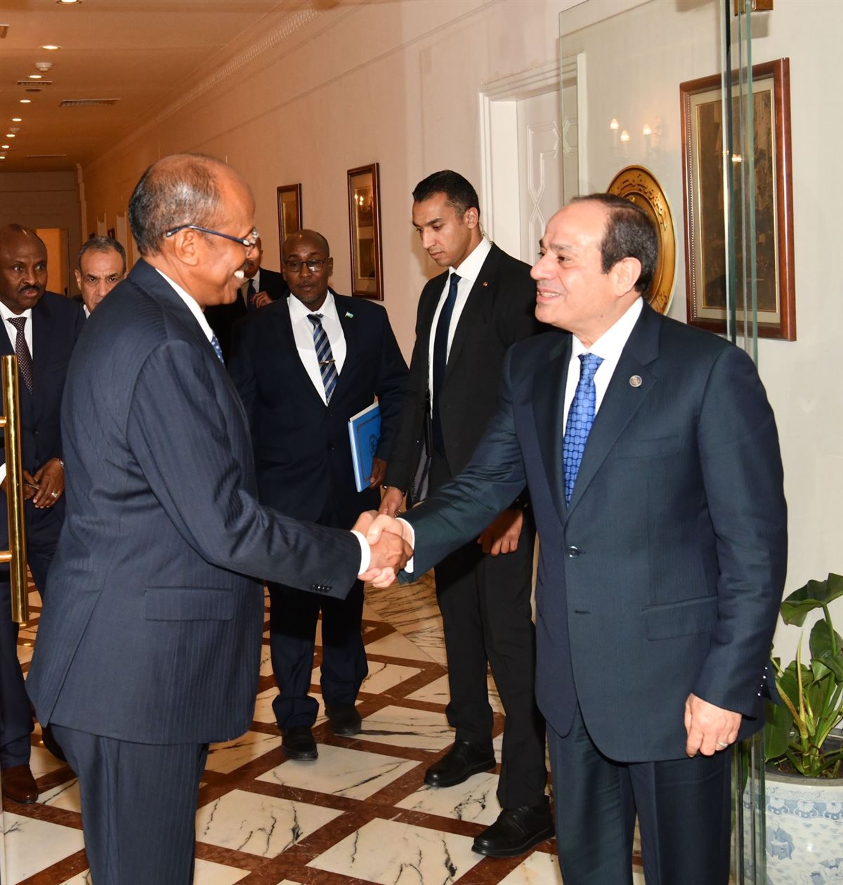 وفي هذا السياق، أكد الرئيس استمرار الجهود المصرية لدعم وحدة الصومال واستقراره وسلامة أراضيه. كما تناول اللقاء الأوضاع في البحر الأحمر، حيث تم الاتفاق على أهمية العمل المشترك لضمان استعادة الأمن في مضيق باب المندب وحركة الملاحة الطبيعية في البحر الأحمر.
