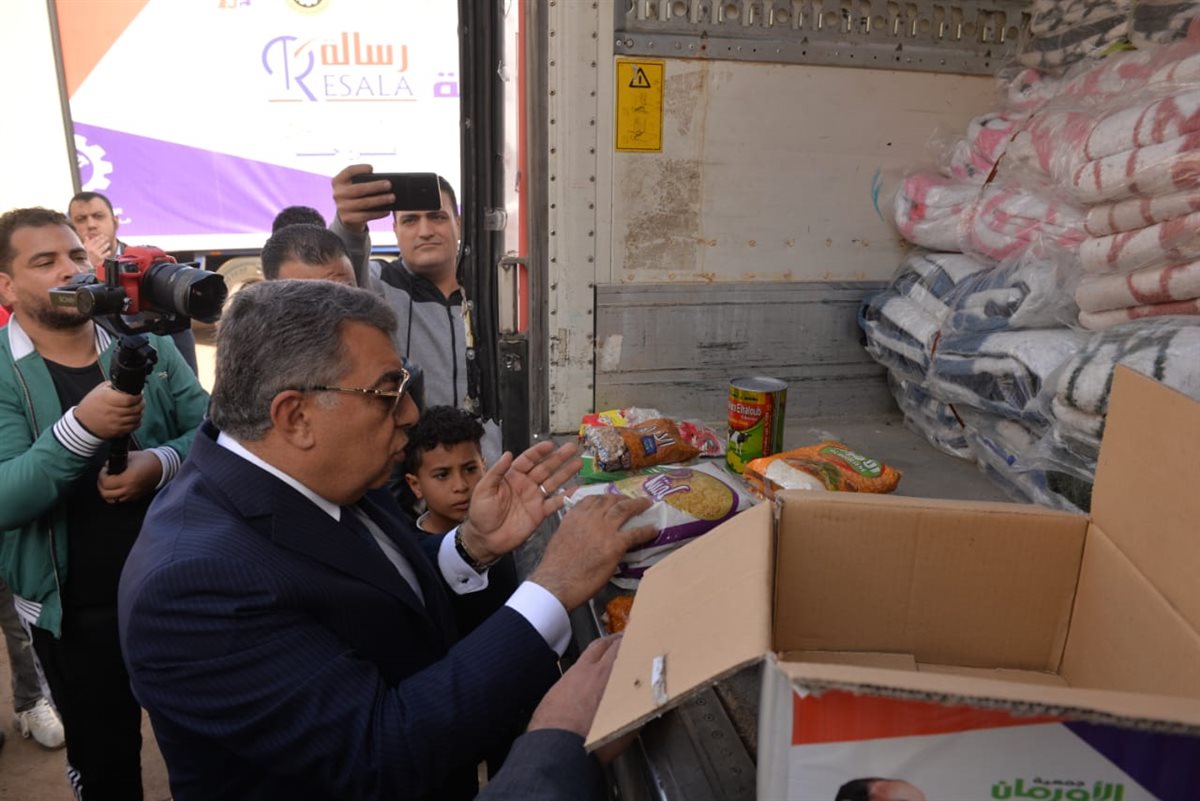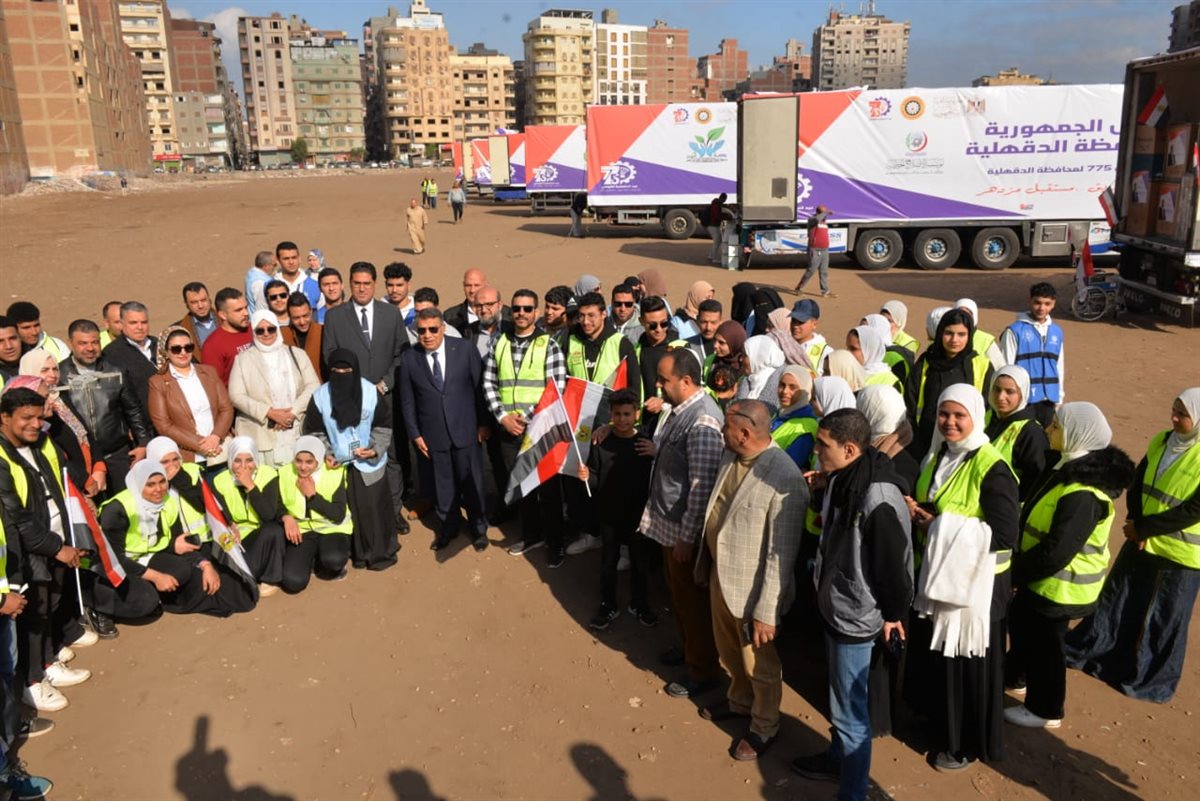 تحمل مساعدات متنوعة تضم كراتين مواد غذائية متنوعة، وأجهزة عرائس، وثلاجات وغسالات وبوتاجازات ومراتب وبطاطين، وغيرها من أنواع المساعدات، يرافقه الدكتور أحمد العدل نائب المحافظ، وذلك في إطار احتفالات الدقهلية بالعيد القومي.