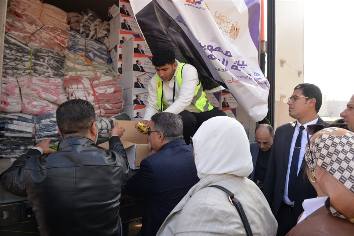7 تريلات مواد غذائية وجهاز عرائس، هدية السيسي لأهالي الدقهلية احتفالا بالعيد القومي (صور)