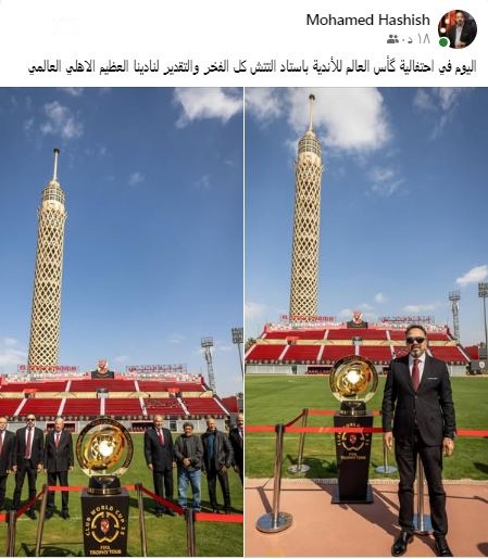 تعليق محمد حشيش على صورته مع كأس مونديال الأندية