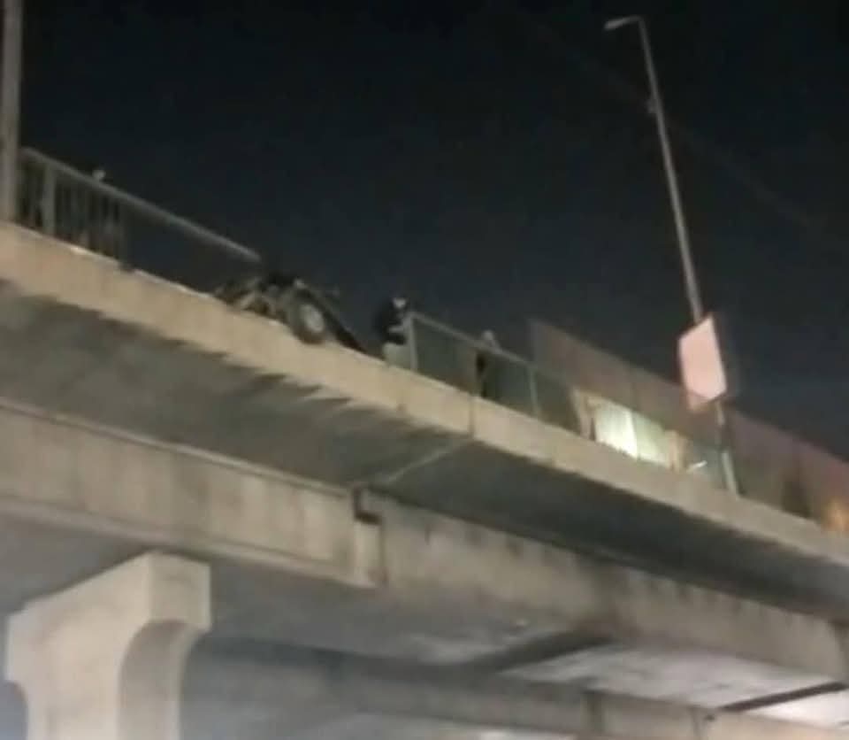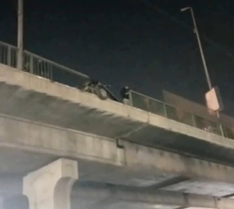 سقوط سيارة من أعلى كوبري الصاغة بالزقازيق بعد اصطدامها بأخرى (صور)