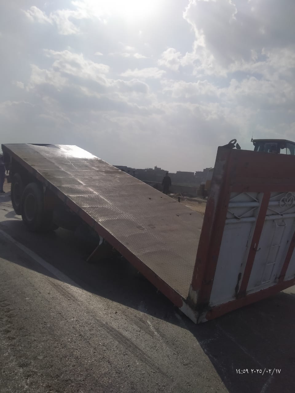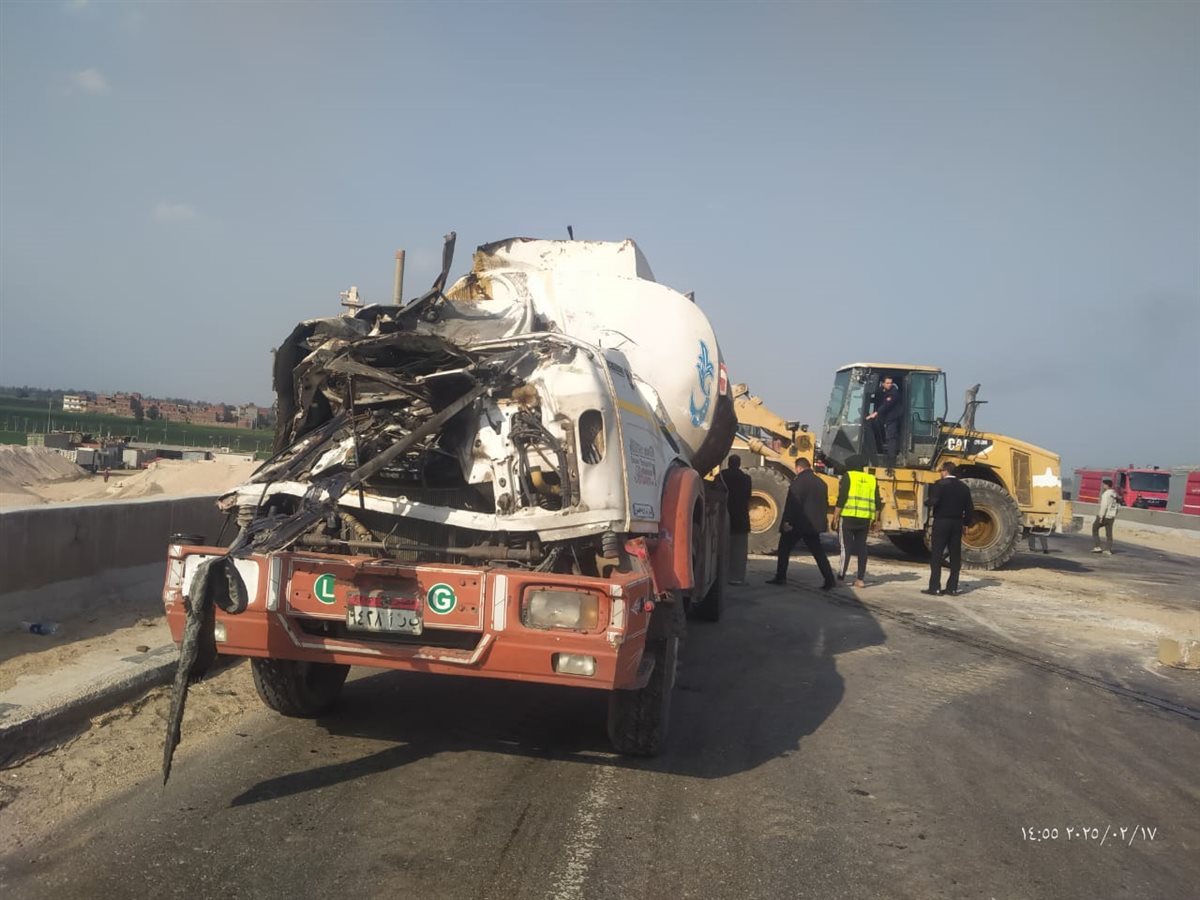 انقلاب سيارة محملة بالبنزين بعد اصطدامها بنقل ثقيل على الإقليمي بالمنوفية (صور)