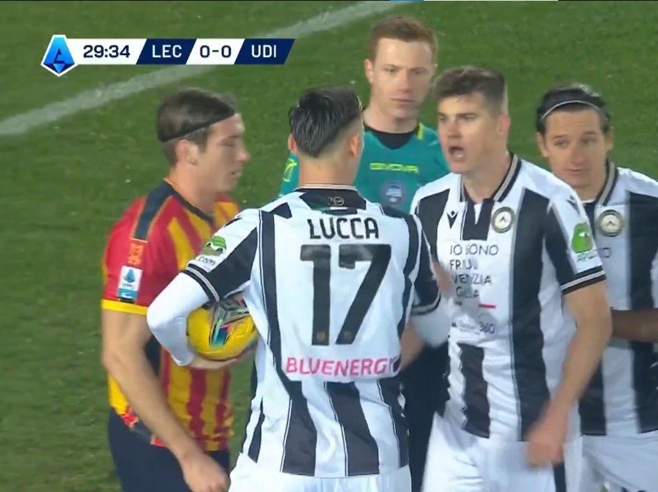 وتداول رواد مواقع التواصل الاجتماعي حادثة غريبة كان بطلها لاعب أودينيزي لورينزو لوكا، وذلك بعد خلاف حاد تحول إلى شجار حول تنفيذ ركلة جزاء.