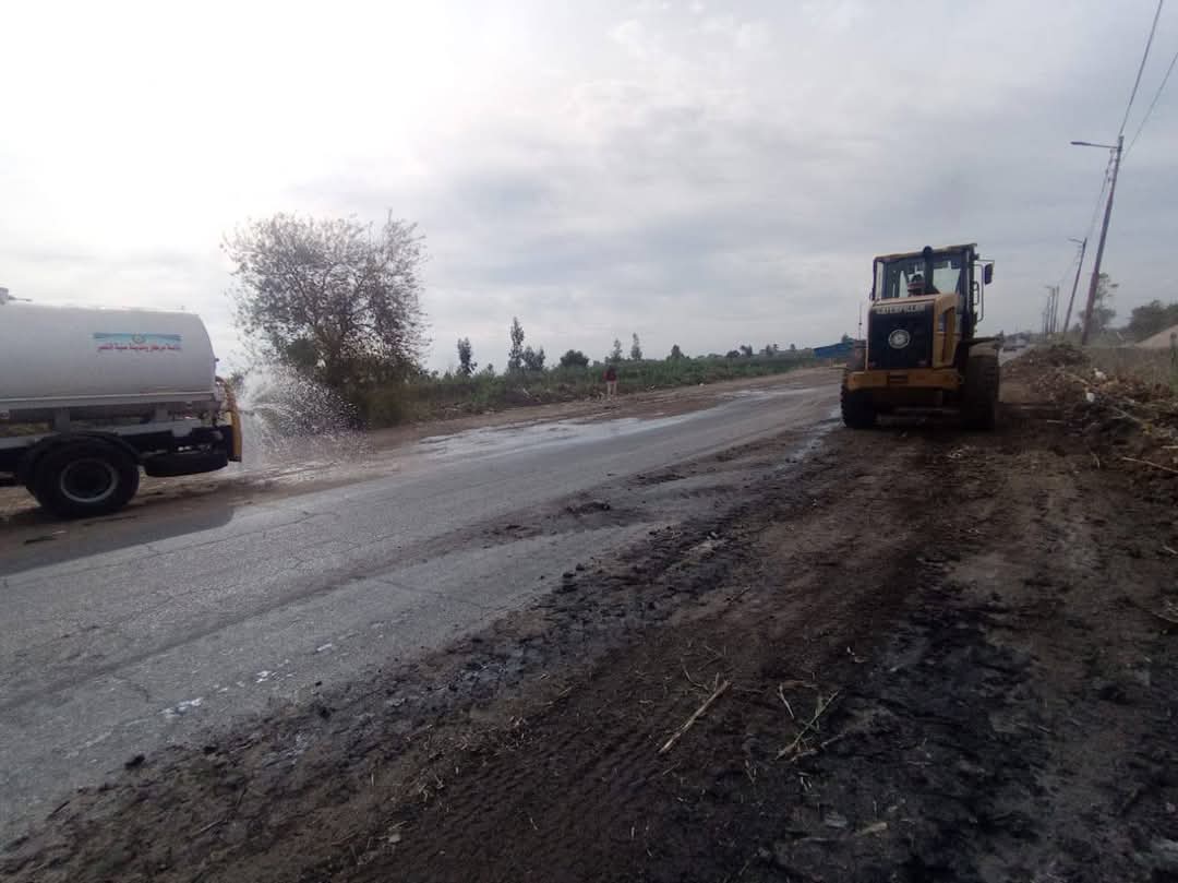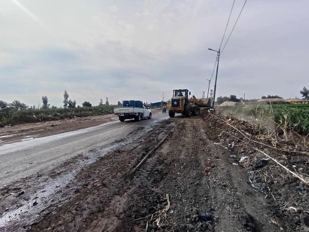 رفع ناتج التطهير بالطريق الرئيسي بالدراكسة منية النصر في الدقهلية