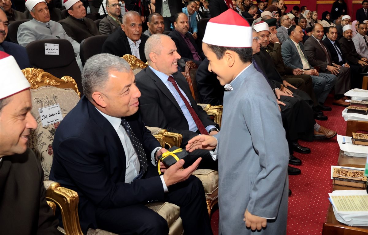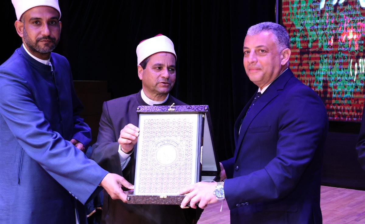 وقام الشيخ ممدوح عبد الجواد بإهداء المصحف الشريف المهدى من فضيلة الأمام الأكبر أحمد الطيب شيخ الأزهر الجليل للواء طيار أ.ح أكرم محمد جلال محافظ الإسماعيلية.