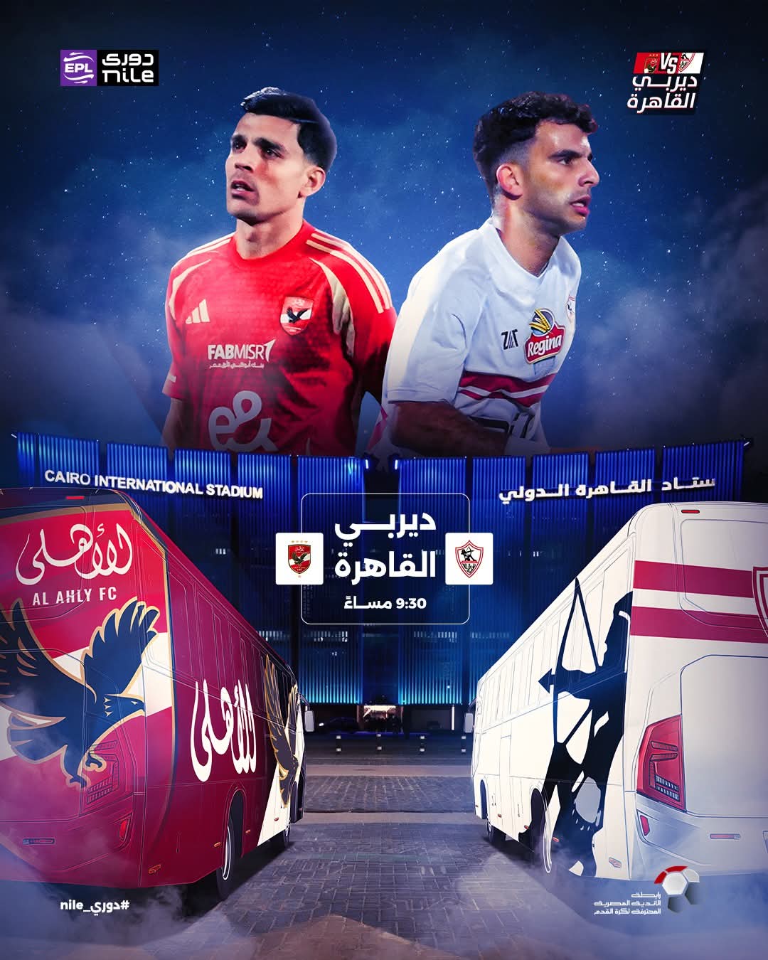 الأهلي والزمالك الثلاثاء ١١ مارس ٩.٣٠ مساء