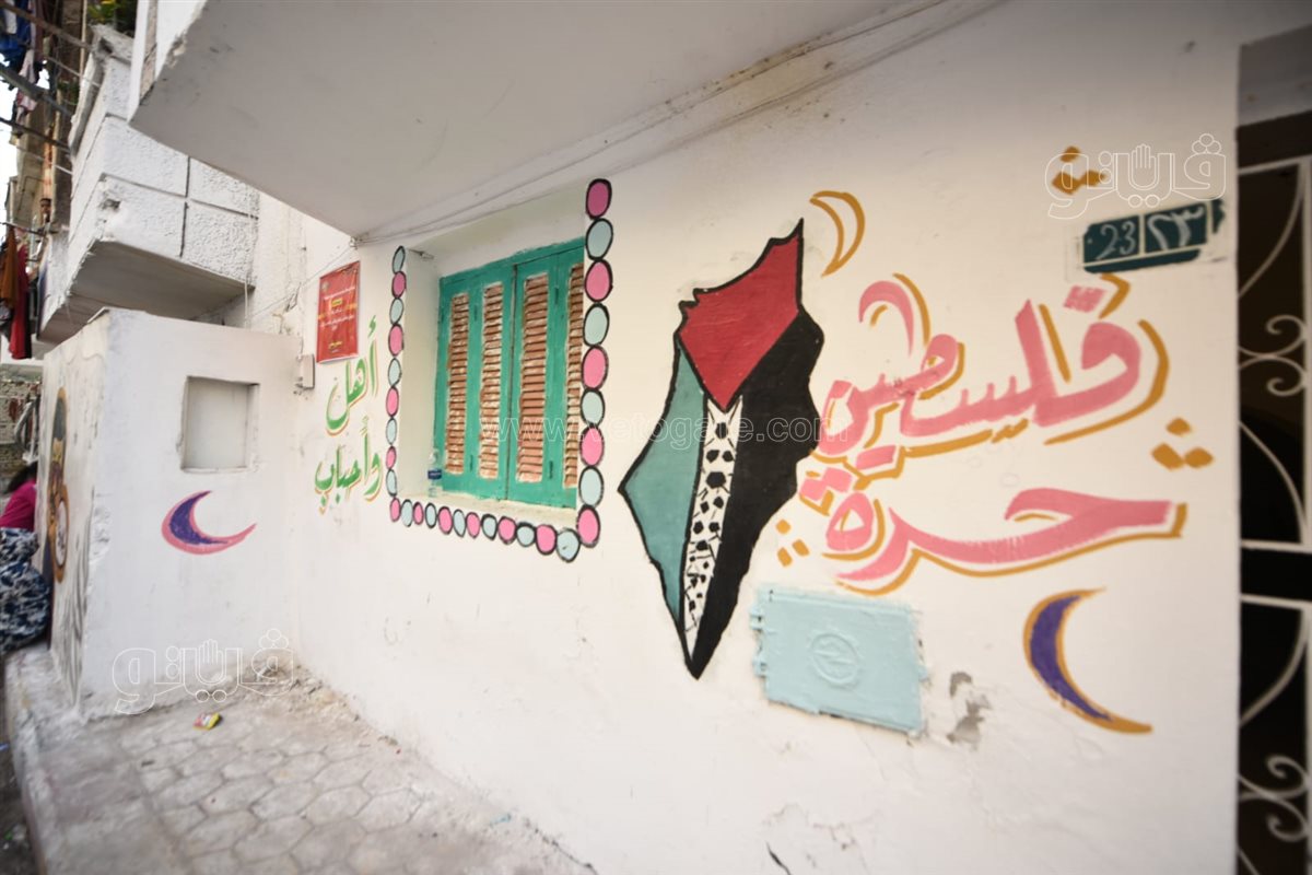 برسائل الترحيب والجرافتي وعلم فلسطين، المطرية تتزين استعدادا لحفل الفطار الجماعي السنوي (فيديو وصور)