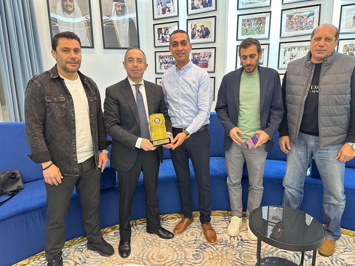 وحرص مسئولو نادى الخور القطري على إهداء السفير عمرو الشربيني ووفد البعثة المصرية برئاسة محمد أبو حسين درع النادى.