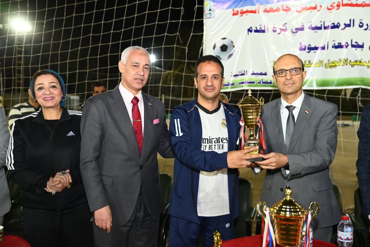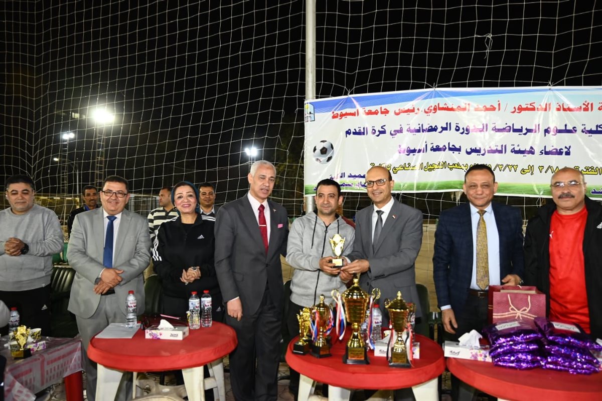 كرم الدكتور أحمد المنشاوي، رئيس جامعة أسيوط، الفرق الفائزة في الدورة الرمضانية لكرة القدم لأعضاء هيئة التدريس، التي نظمتها كلية علوم الرياضة بالجامعة، والتي أقيمت على ملعب النجيل الصناعي بالكلية، واستمرت فعالياتها من 18 إلى 22 مارس، بمشاركة 11 فريقًا من مختلف كليات الجامعة، تحت إشراف الدكتور عماد سمير، عميد كلية علوم الرياضة، والدكتور عاصم صابر، رئيس قسم المناهج وطرق تدريس التربية الرياضية والمدير الفني للبطولة.