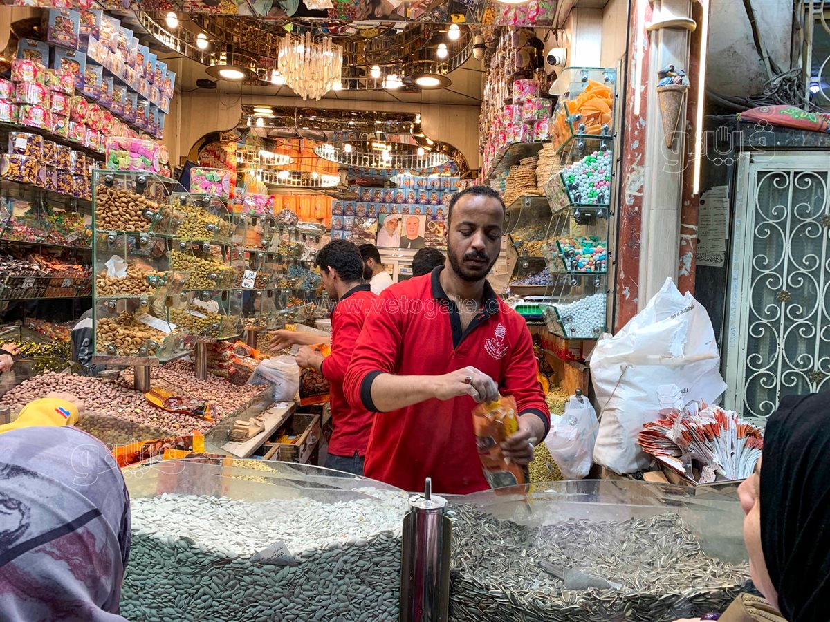 ويشهد سوق السيدة زينب حركة دؤوبة طوال اليومين الأخيرين قبل عيد الفطر، حيث يُقبل الجميع على شراء المحمصات بكميات كبيرة، وتزداد المنافسة بين التجار لعرض منتجاتهم بشكل لافت.