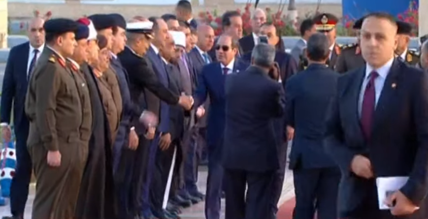 لحظة وصول الرئيس السيسي مسجد المشير طنطاوي لأداء صلاة عيد الفطر (فيديو)