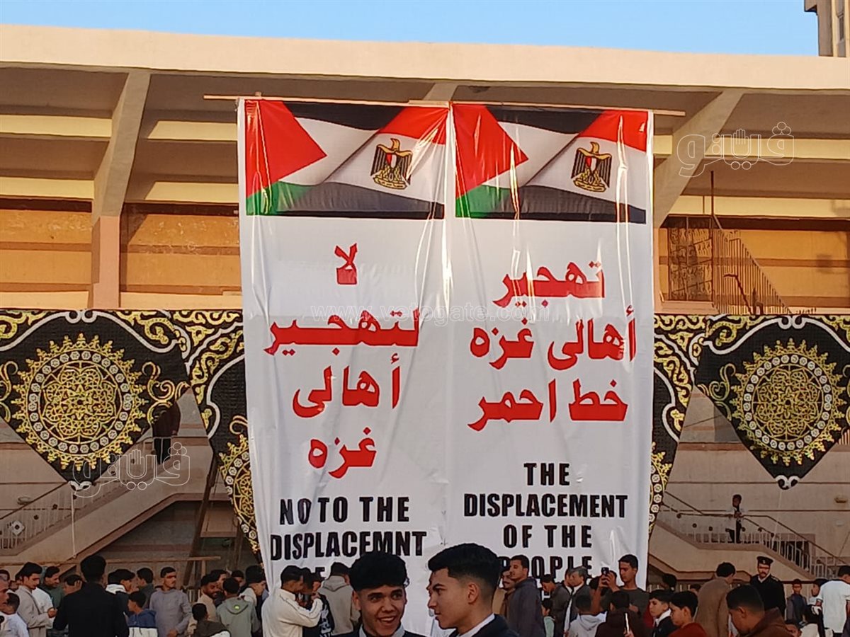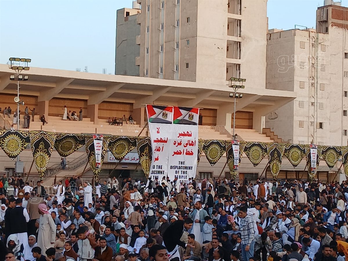 ورصدت “فيتو” تعليق لافتة على مدرجات مركز شباب مطروح أحد أكبر ساحات صلاة العيد بمدينة مرسى مطروح، رفض تهجير أهالي غزة من أراضيهم ومدون عليها “تهجير أهالي غزة خط أحمر” “لا لتهجير أهالي غزة”، كما رفع الأهالي أثناء الصلاة أعلام فلسطين تضامنًا مع الشعب الفلسطيني.