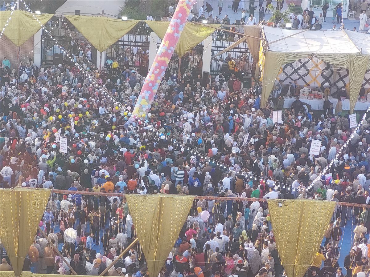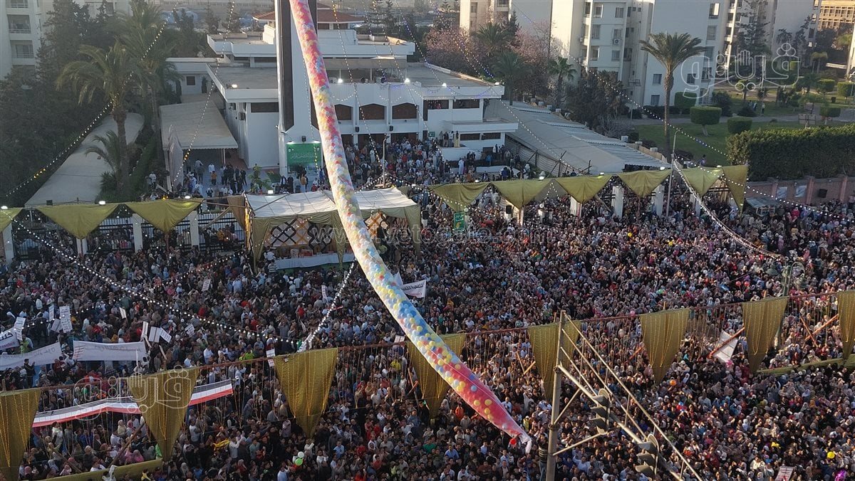 وأطلقت إدارة المسجد شلالا من البلالين علي حشود المصلين المتواجدين في الطريق وبساحة المسجد وسط فرحة عارمة من الجميع.