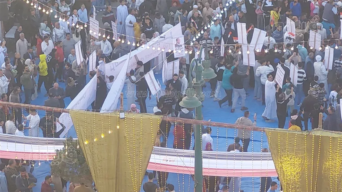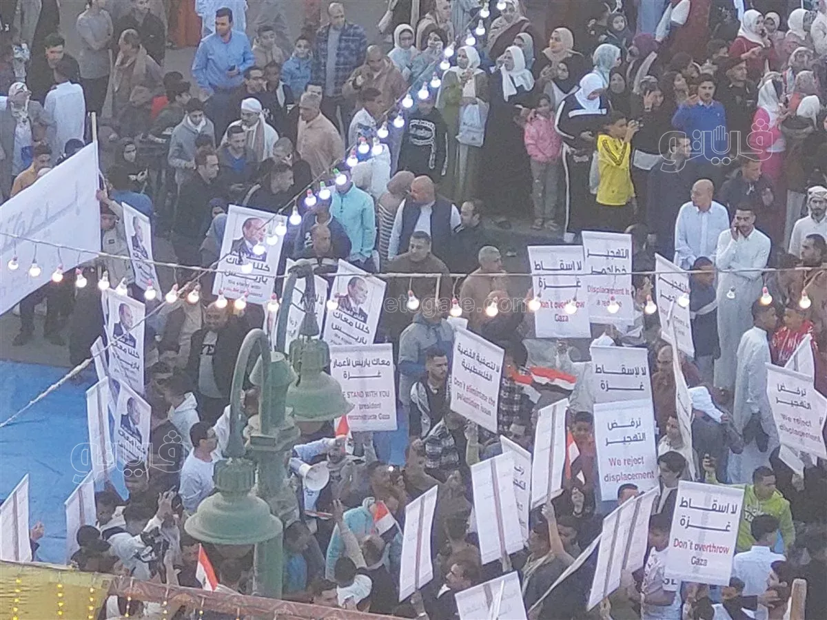 كما تم تنظيم وقفة تضامنية لدعم فلسطين عقب الصلاة ورفع علم مصر وصور الرئيس عبد الفتاح السيسي، ولافنات تضامنية مع غزة ورفض التهجير وسط تفاعل اللالاف الموجوده عقب الصلاة.