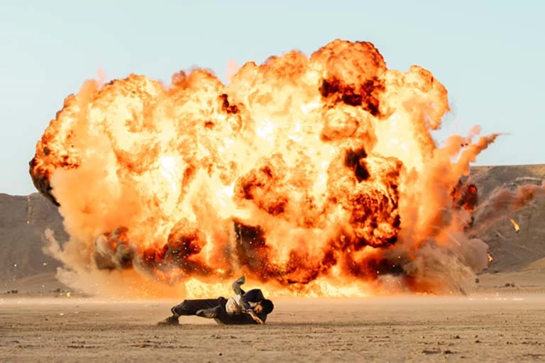 ونشر المستشار تركي آل الشيخ رئيس الهيئة العامة للترفيه بالمملكة العربية السعودية، مقطع فيديو للحظة التفجير الذي أصيب فيه المخرج واثنان من فريق التصوير".