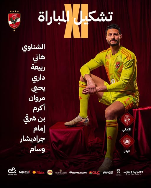وأعلن مارسيل كولر المدير الفني للفريق الأول لكرة القدم بالنادي الأهلي تشكيل فريقه لمواجهة منافسه فريق الهلال السوداني.