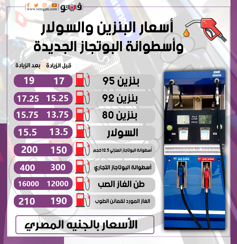 زيادة أسعار البنزين والسولار وأسطوانة البوتجاز (إنفوجراف)