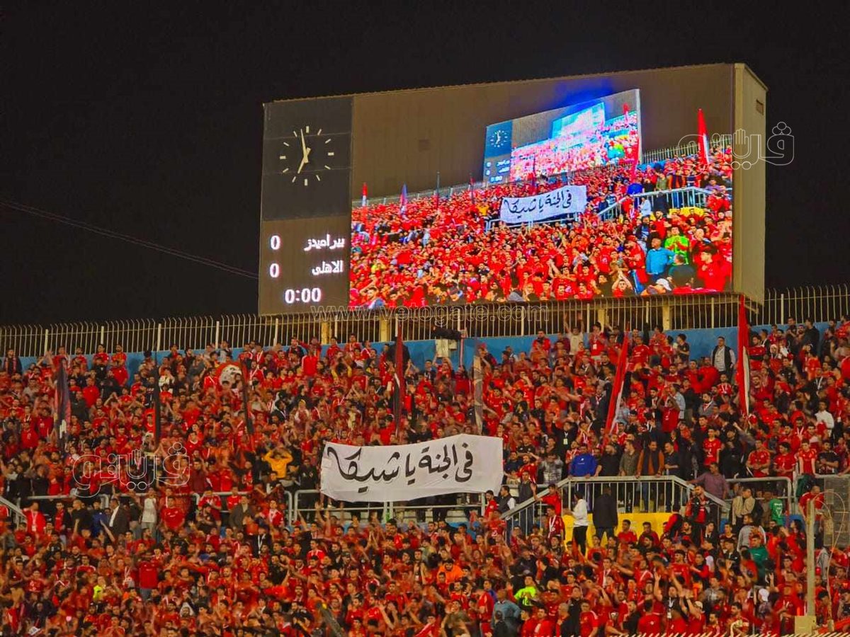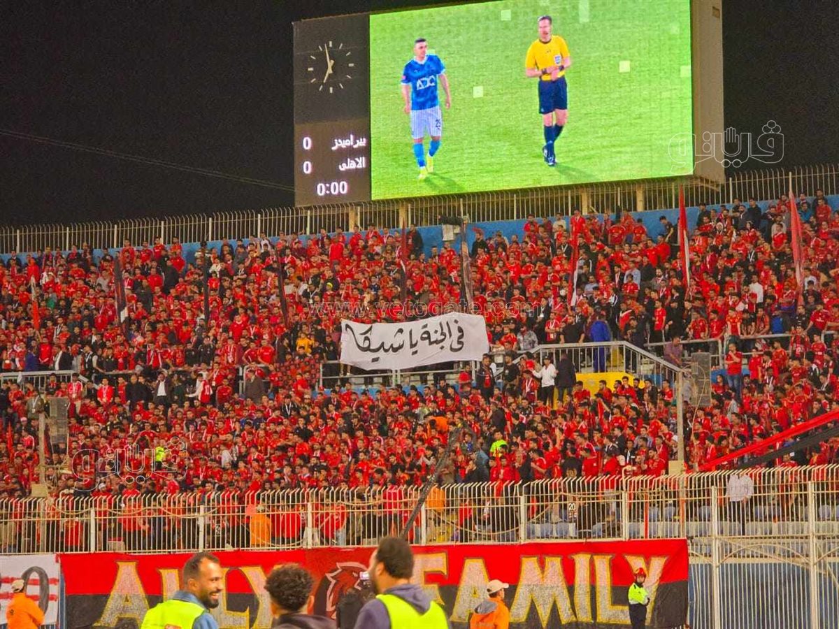 ورفعت جماهير الأهلي لافتة: "في الجنة يا شيكا " وذلك في مباراة المارد الأحمر أمام بيراميدز في مباراة الفريقين ضمن منافسات بطولة الدوري الممتاز بملعب الدفاع الجوي.