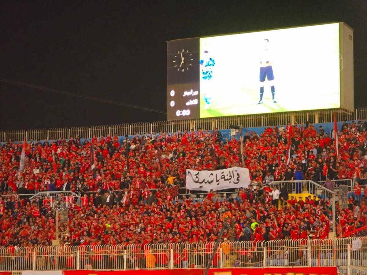 الأهلي، حرصت جماهير النادي الأهلي على رفع لافتة لإبراهيم شيكا لاعب الزمالك السابق، والذي توفي صباح اليوم السبت بعد صراع طويل مع مرض السرطان.