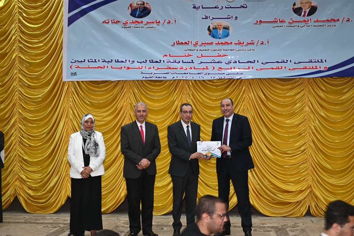 نظمت جامعة الفيوم، حفل ختام الملتقى القمي الحادي عشر للطلاب والطالبات المثاليين، والملتقى القمي الرابع لسفراء النوايا الحسنة، اليوم الأربعاء، الذي استمر في الفترة من 12 ابريل وحتى 16 أبريل الجاري.
