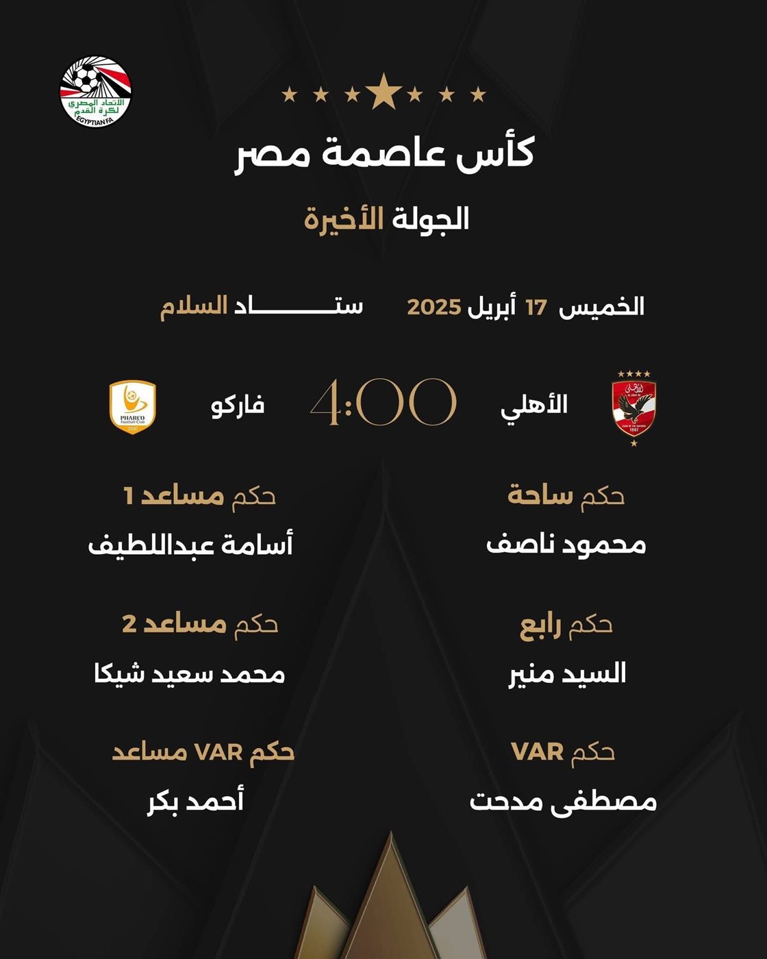 ويخوض النادي الأهلي مباراة فاركو اليوم في كأس عاصمة مصر بفريق 2005، بقيادة سامر عبد الرحمن مديرًا فنيًّا، ومحمد نجيب مدربًا عامًّا نظرا لتواجد الفريق الأول لكرة القدم بالأهلي بجنوب إفريقيا، استعدادا لخوض مباراة صن داونز الجنوب إفريقي في ذهاب نصف نهائي دوري أبطال إفريقيا.