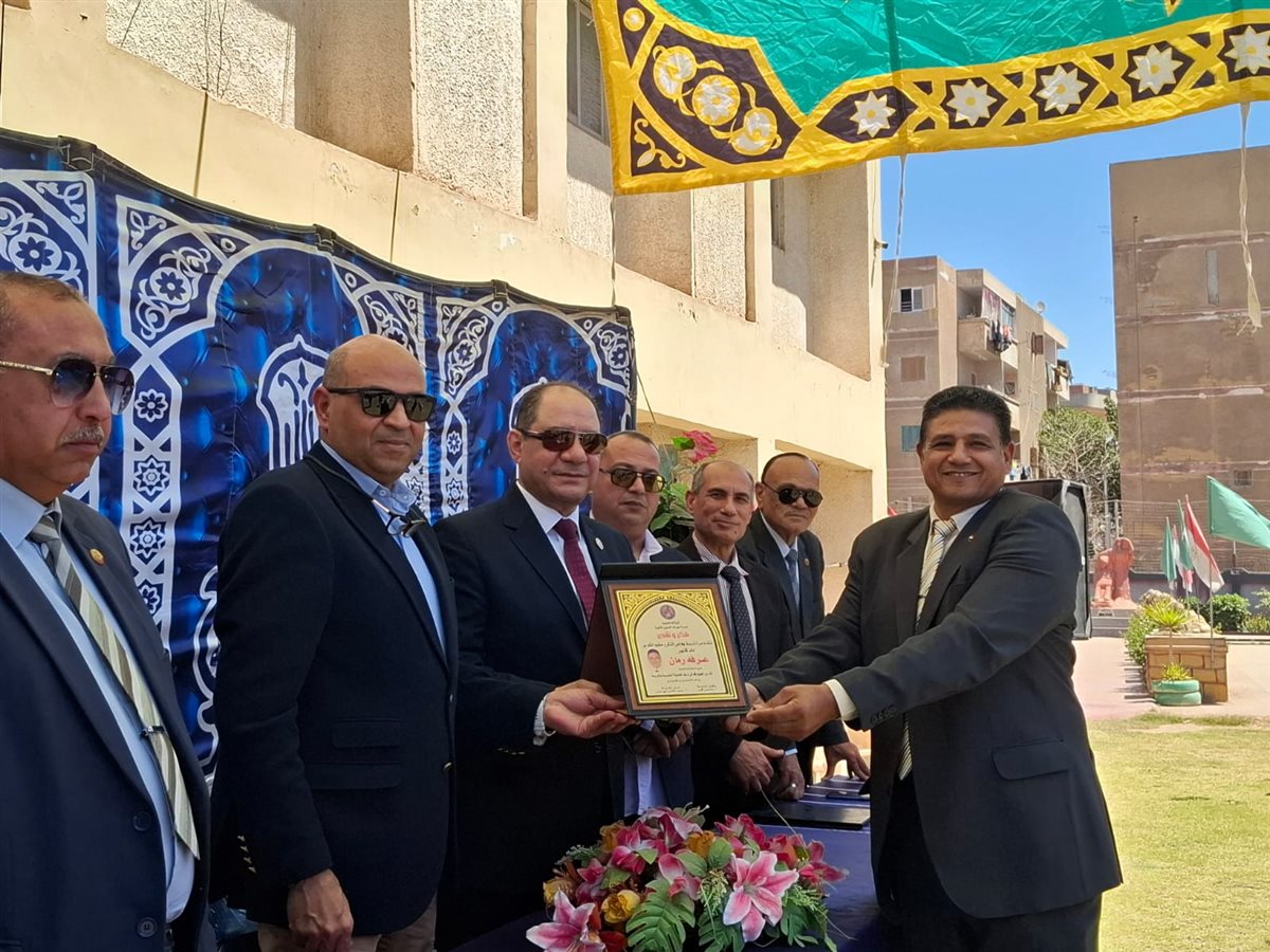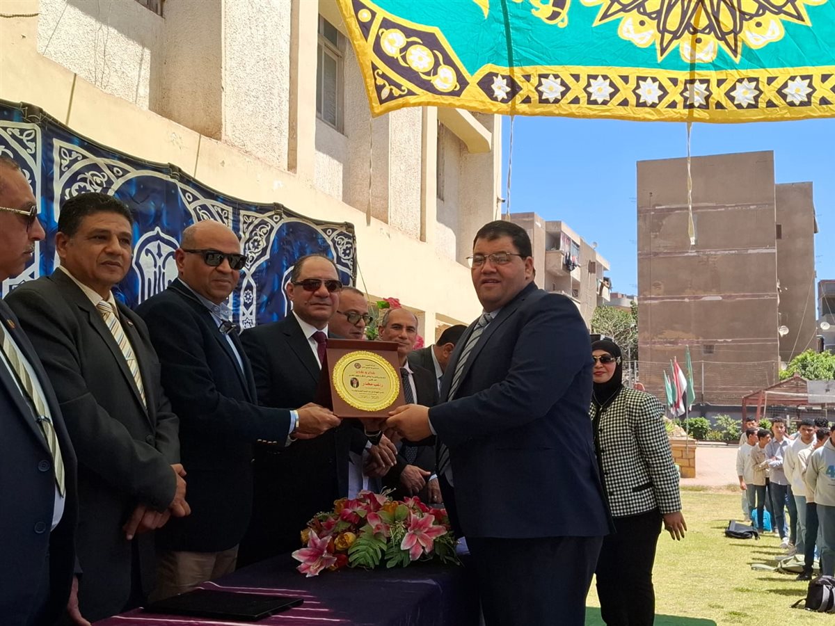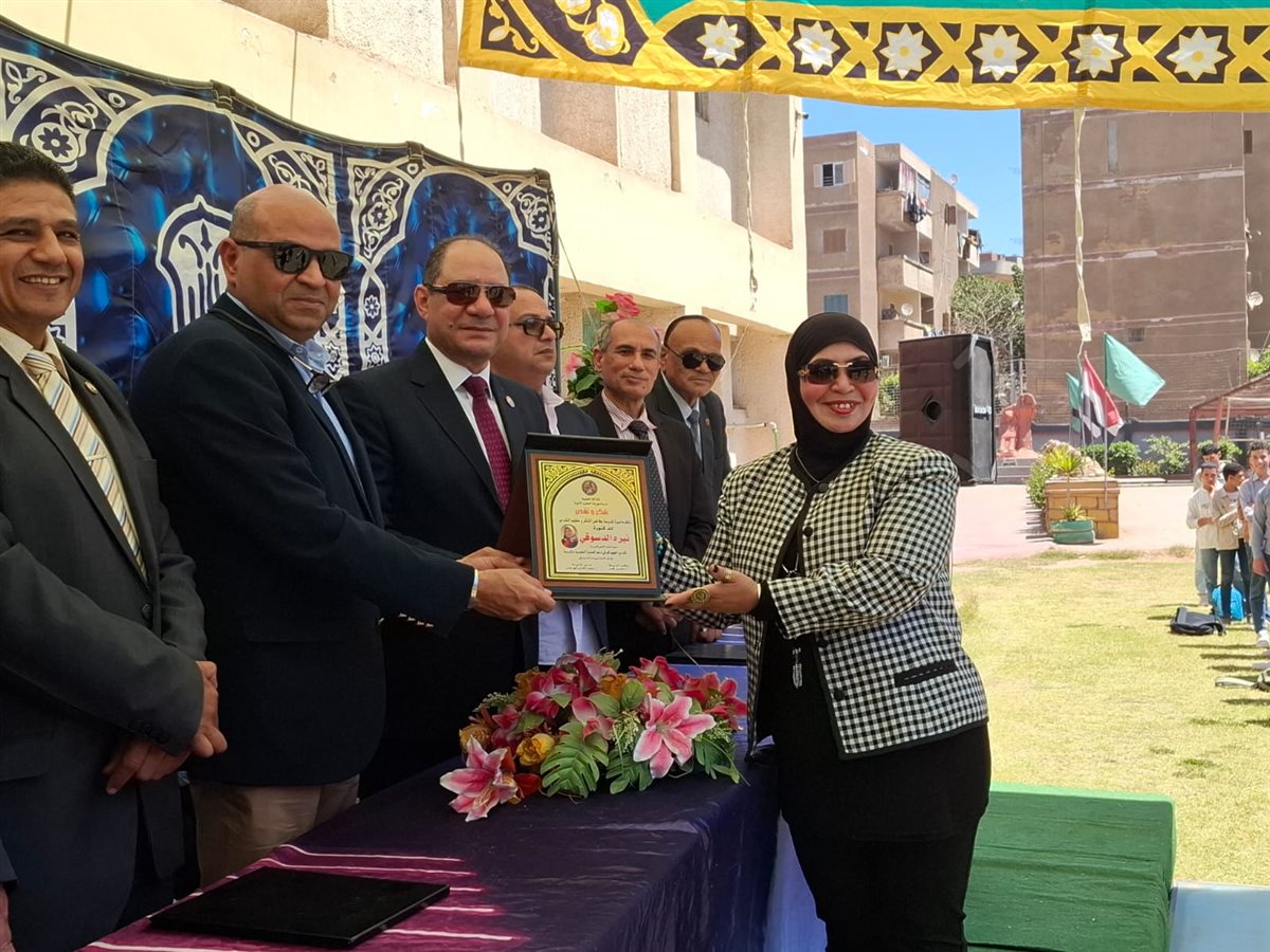 وقام بتكريم الطلاب الحاصلين على المراكز الأولى في أنشطة الكرة الطائرة وكرة القدم والصحافة، وتكريم أوائل طلاب الصف الثالث الثانوي الفائزين بالمركز الأول على مستوى المحافظة، كما قام بتكريم المتميزين من المعلمين بالمدرسة وقيادات الإدارة والمديرية.