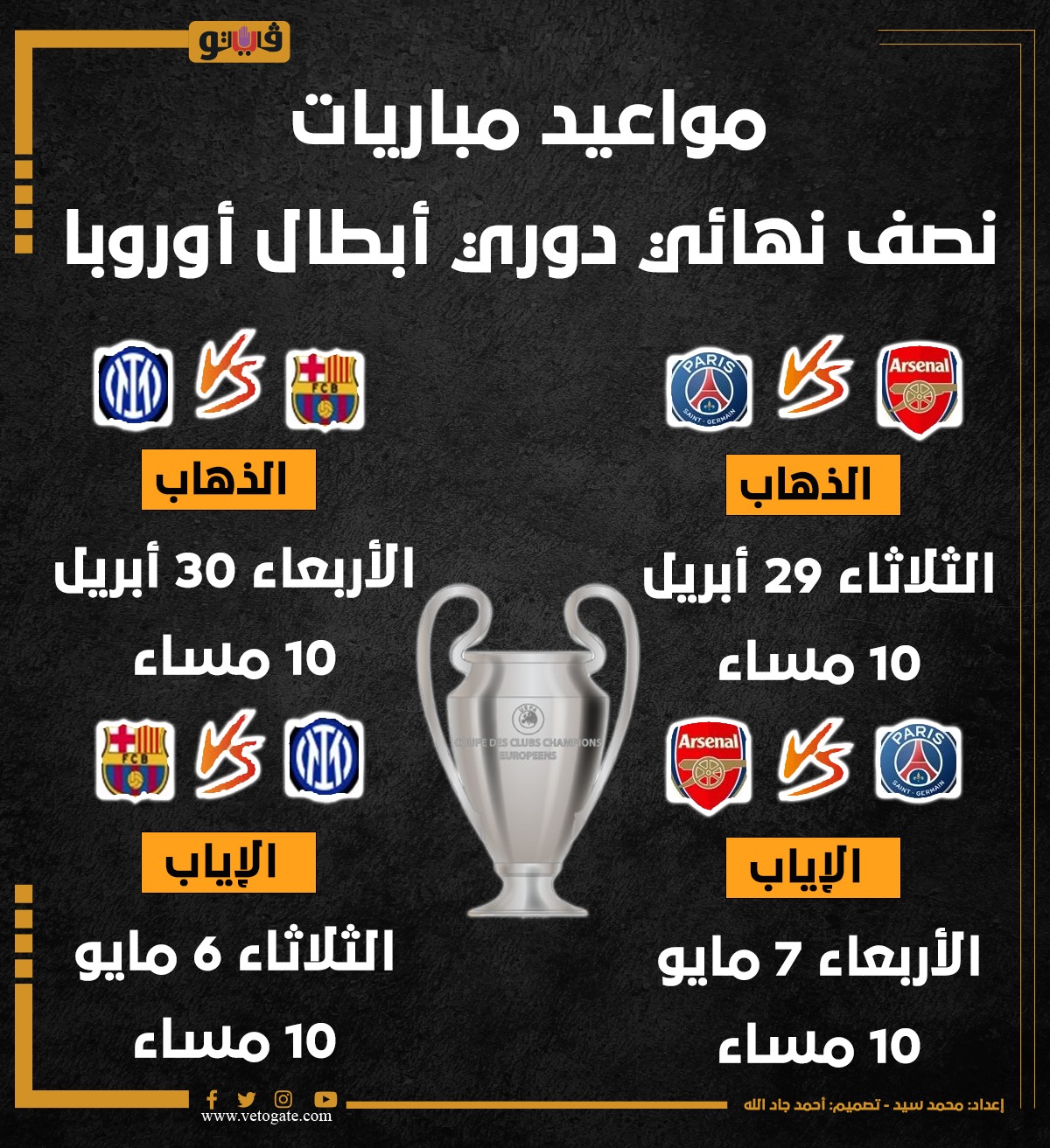 مواعيد مباريات نصف نهائي دوري أبطال أوروبا (إنفوجراف)