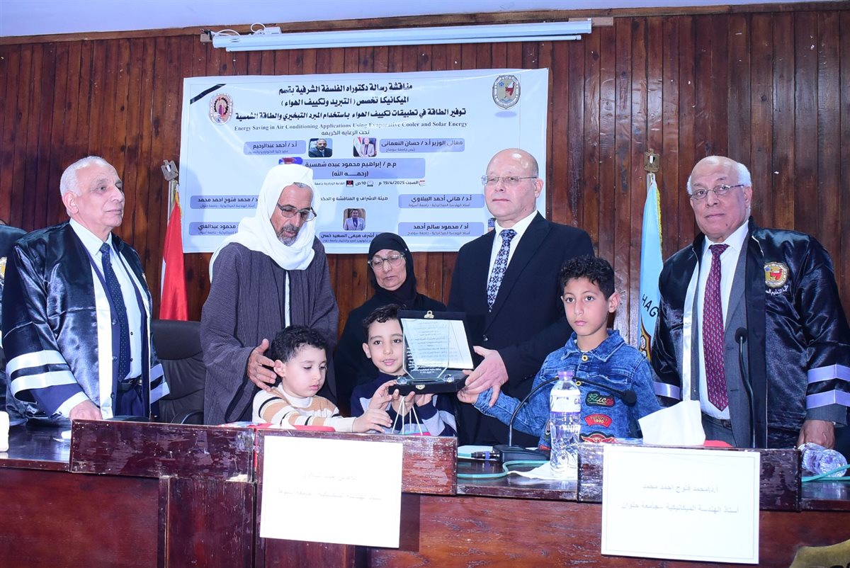 في لفتة إنسانية وعلمية غير مسبوقة، وخطوة إنسانية، ناقشت جامعة سوهاج اليوم، رسالة دكتوراه للباحث إبراهيم محمود عبده شمسية المدرس المساعد بكلية التكنولوجيا والتعليم بعنوان "توفير الطاقة في تطبيقات تكييف الهواء باستخدام المبرد التبخيري والطاقة الشمسية"، والذي وافته المنية قبل أيام قليلة من تحديد موعد المناقشة، بحضور الدكتور حسان النعماني رئيس جامعة سوهاج وأعضاء اللجنة المشرفة على الرسالة وأسرة الباحث، وذلك بالقاعة الزجاجية بالحرم الجامعي القديم.