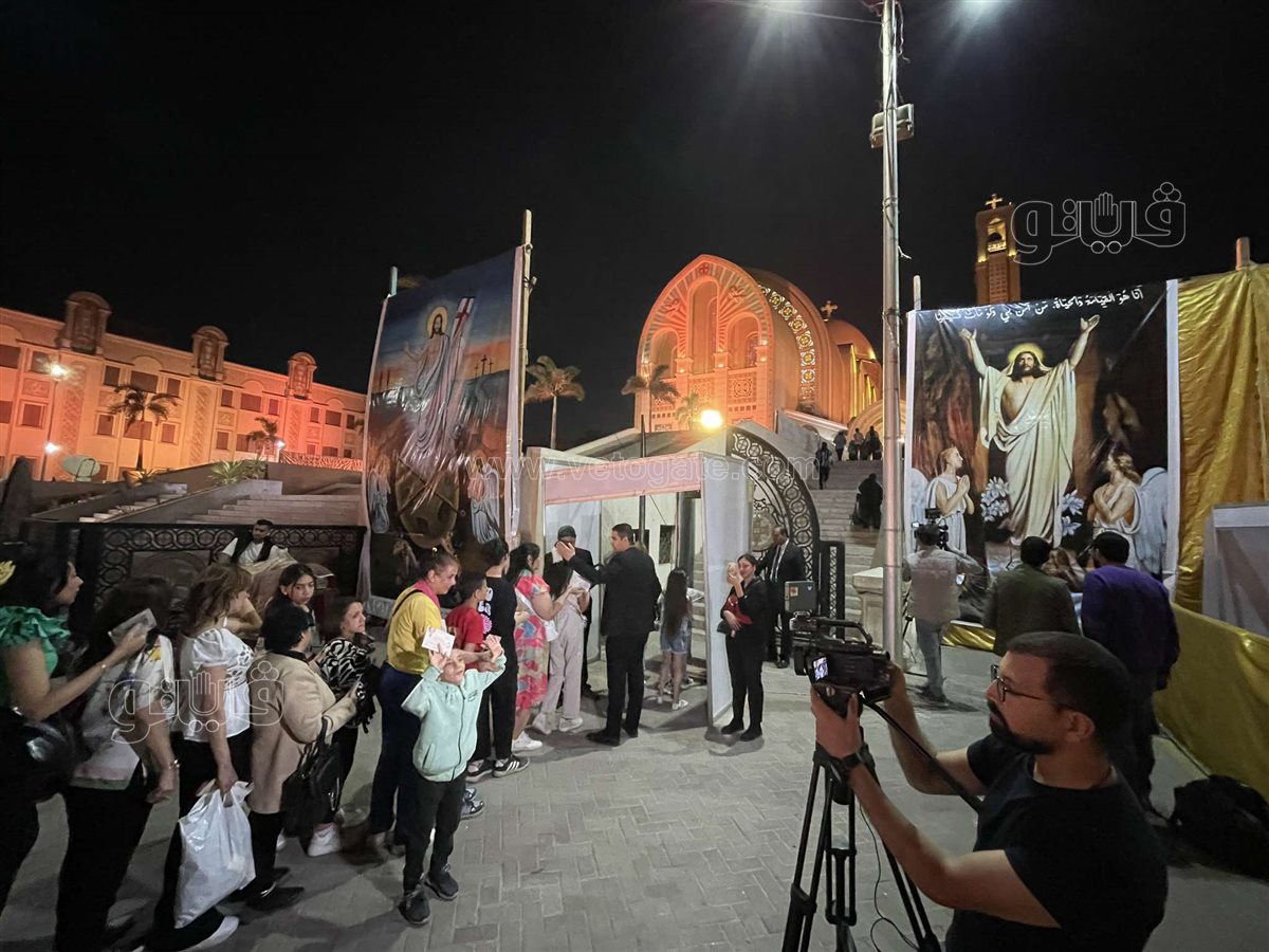 توافد المهنئين على الكاتدرائية المرقسية بالعباسية للمشاركة في الاحتفال بعيد القيامة المجيد وسط أجواء من الفرح والوحدة الوطنية.
