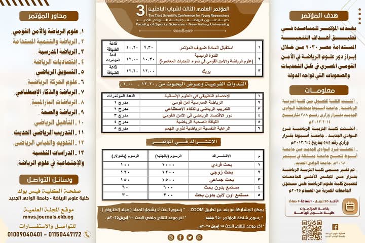 انطلاق المؤتمر العلمي الثالث لشباب الباحثين بكلية علوم الرياضة بجامعة الوادي الجديد (فيديو)