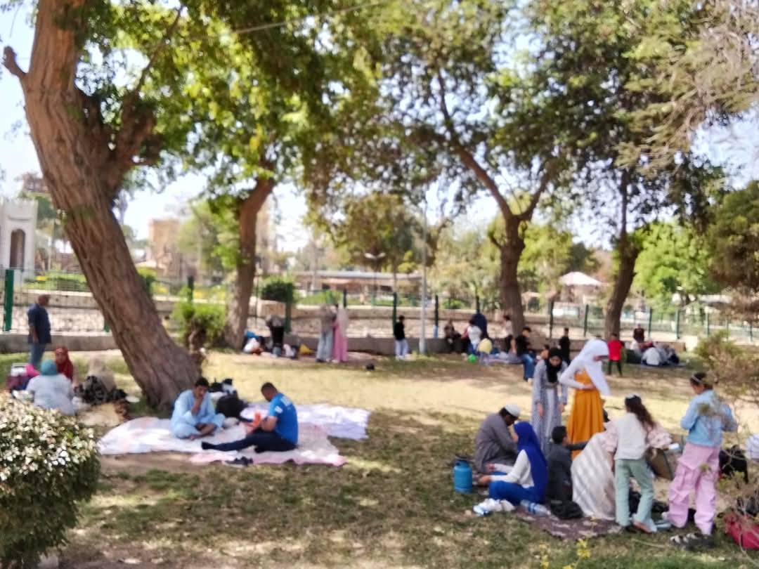 توافد الآلاف من المواطنين من أبناء محافظة القليوبية والقاهرة الكبرى ومحافظات الوجه البحري منذ الصباح الباكر على حدائق ومتنزهات القناطر الخيرية وافترشوا المساحات الخضراء الشاسعة التي تغطي معظم الأماكن للاحتفال بعيد الربيع (شم النسيم) ويحملون الأسماك والرنجة والفسيخ والمشروبات ومكبرات الصوت.