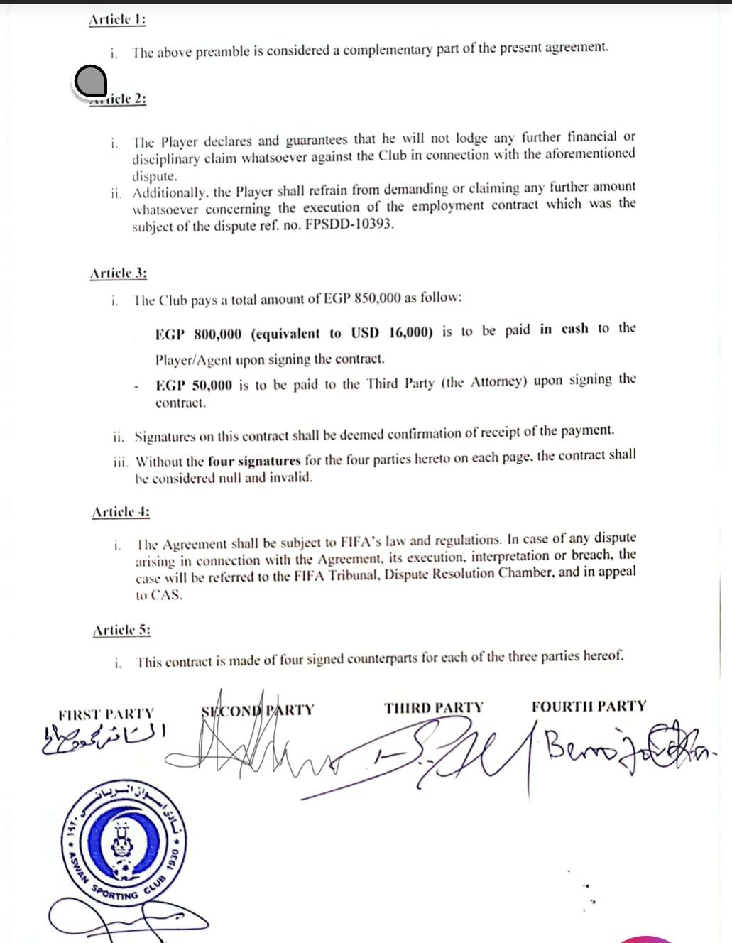 -إدارة نادي أسوان قامت بتسوية مستحقات اللاعب المتسبب فى العقوبة وتم إخطار الفيفا رسميًّا وإجرائيًّا بذلك في وقت سابق.