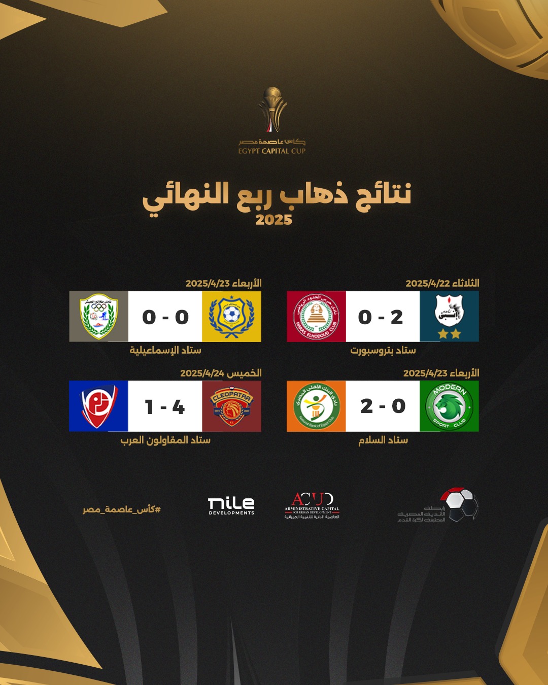 أسدل الستار على مباريات ذهاب ربع نهائي كأس الرابطة المصرية “كأس عاصمة مصر” 2025.