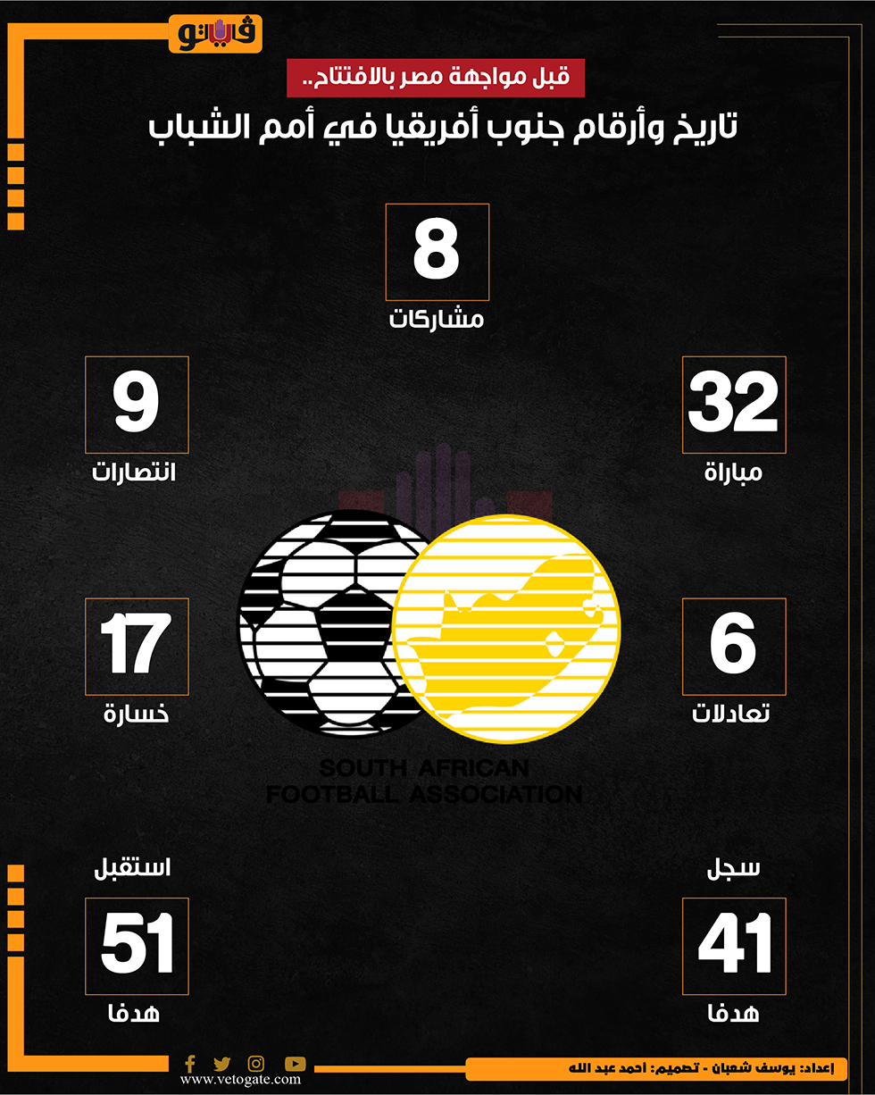 قبل مواجهة مصر بالافتتاح.. تاريخ وأرقام جنوب أفريقيا في أمم الشباب (إنفوجراف)