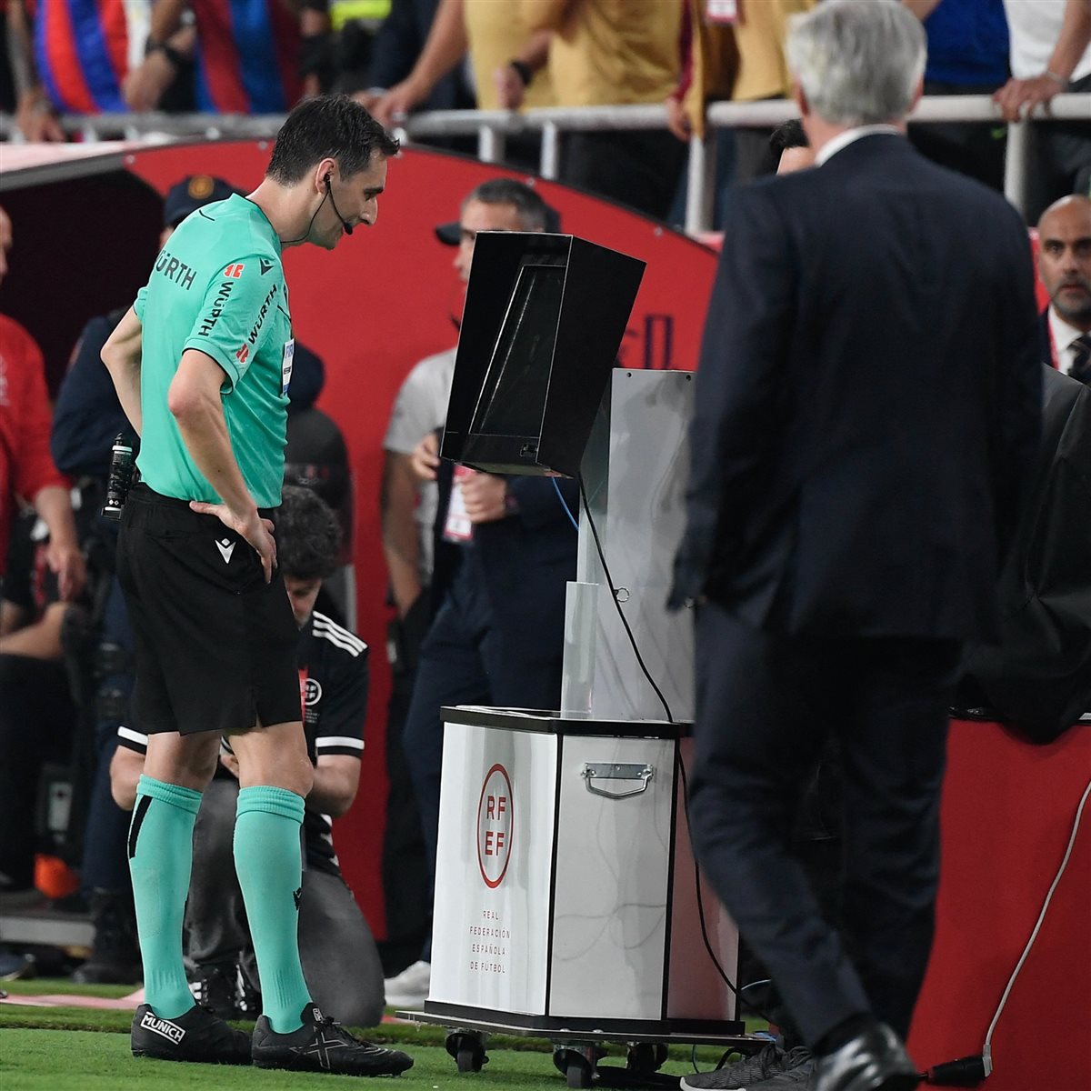 وأثار ريال مدريد خلال الساعات القليلة الماضية وترددت أنباء عن انسحابه أمام برشلونة الحكام حيث طالبت بتغيير طاقم التحكيم، اعتراضًا على تصريحات ريكاردو دي بورجوس بينجويتشيا، حكم الساحة، وجونزاليس فويرتيس، الحكم المسؤول عن تقنية الفيديو "VAR"، بعدما انتقدا هجوم قناة النادي الملكي على الحكام.